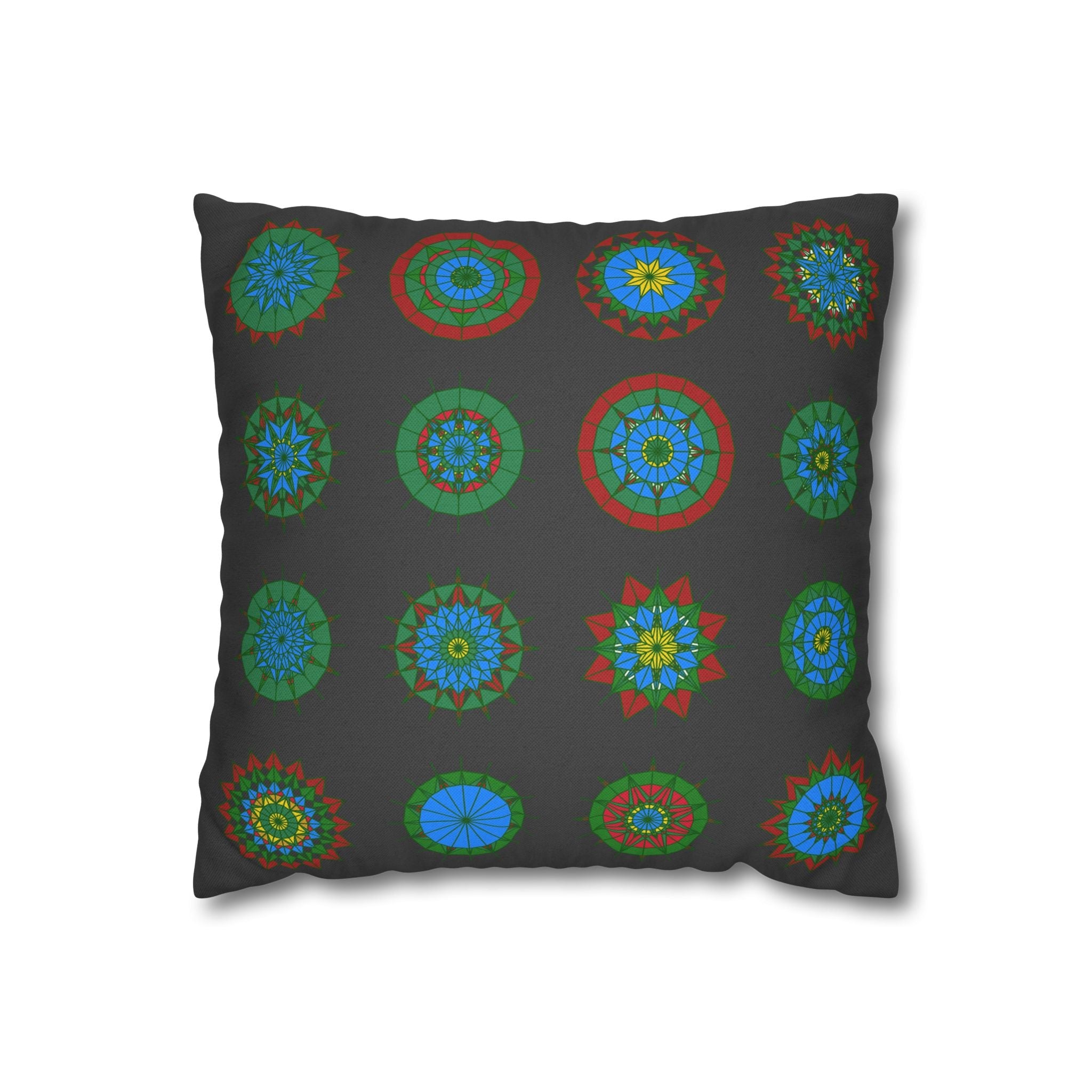 Experience the vibrant dance of colors with our mesmerizing mandala-patterned pillowcase. Each intricate mandala radiates energy, bringing an enchanting touch to your space. The bold hues of blue and green pop against a rich dark gray backdrop, creating an atmosphere that is both calming and invigorating. This decorative piece is perfect for those who appreciate mindful artistry and seek to elevate their home decor.
