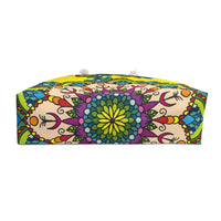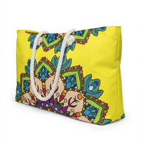 Experience the warmth and joy of sunny getaways with this stunning weekender bag, adorned with vibrant, hand-drawn mandalas that burst with life against a cheerful yellow backdrop. Each intricate design invites a sense of adventure, making this bag the perfect companion for beach days, weekend road trips, or any spontaneous escape that calls your name.