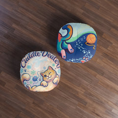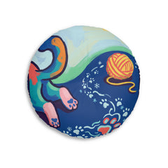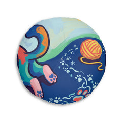 Place this cheerful cat cushion in a room and feel the instant lift — a warm, playful hug for the eye and the body. The bright, painterly colors make the corner feel happier; the friendly, folded-paws pose invites cur...