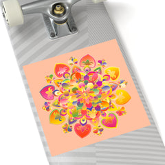 Elevate your style with these square laminate stickers featuring a stunning hand-drawn mandala in shades of gold, red, and green on a peach background. Crafted from premium vinyl material and coated with a protective laminate, these stickers offer a vivid and long-lasting design. Water and scratch-resistant, they're perfect for decorating laptops, notebooks, kitchen, or any surface you want to personalize with elegance and durability.