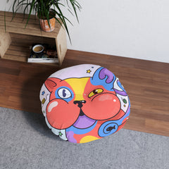 Surreal Cute Cat Round Floor Pillow — Playful Cozy Cushion