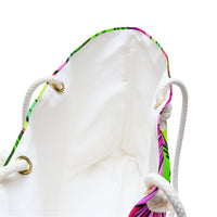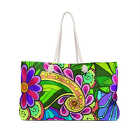 Unleash your adventurous spirit with this vibrant weekender bag, bursting with a kaleidoscope of lush greens and playful pinks. Adorned with an enchanting floral design, this bag invites joy and spontaneity, making every journey a delightful experience. Its cheerful aesthetic is perfectly suited for beach days, weekend getaways, or lively festivals, effortlessly combining practicality with a splash of artistry.