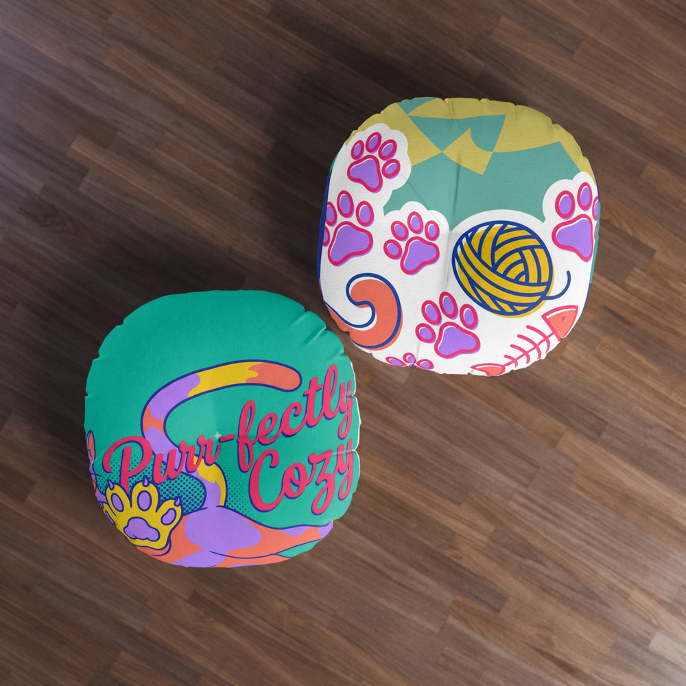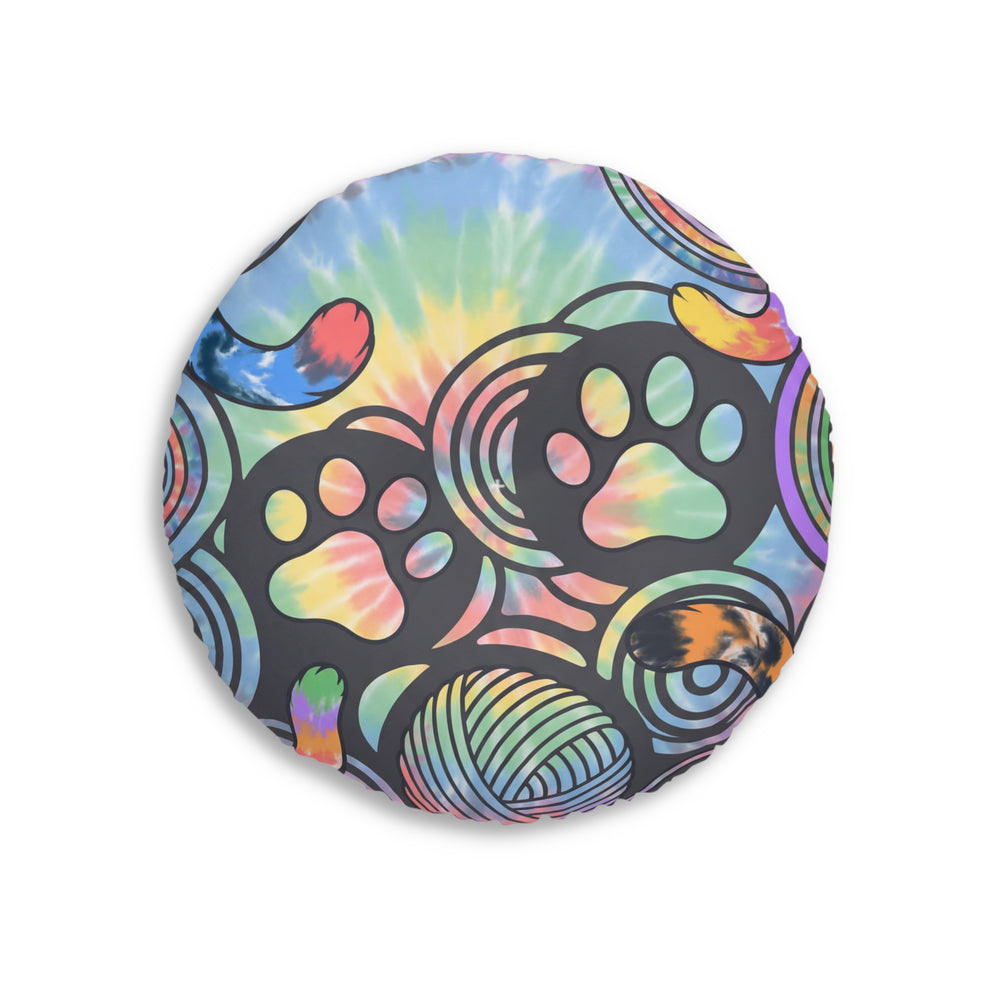 Purrfectly Cozy Cat Floor Pillow — Tie-Dye Round Cushion