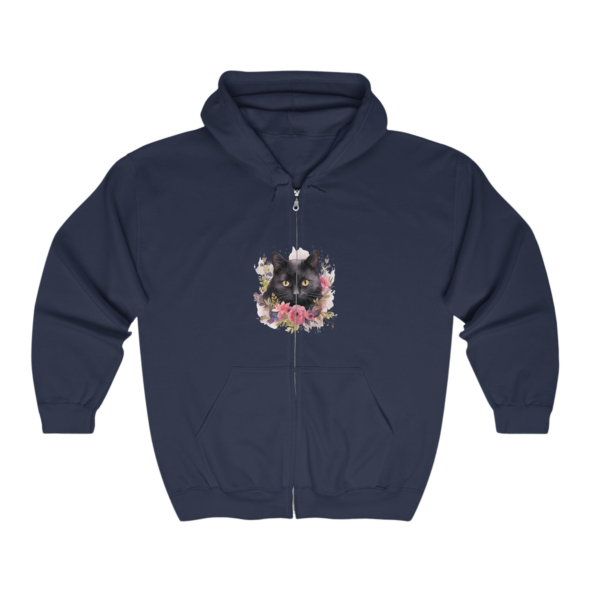 Stylish Black Cat Hoodie with Floral Elegance for Art Lovers