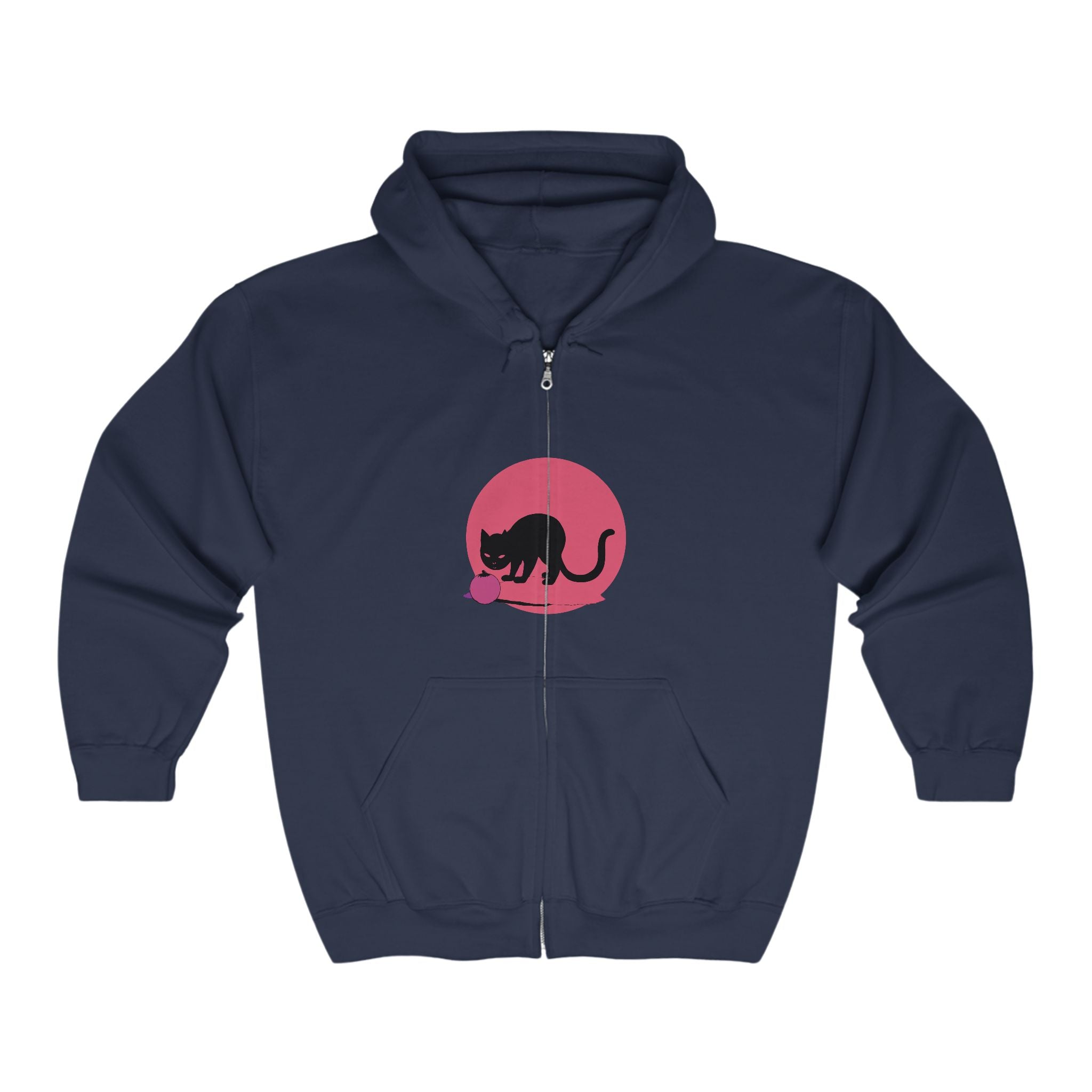 Enveloped in a captivating blend of elegance and whimsy, this enchanting hoodie features a striking black cat playfully poised before a dreamy pink moon. The watercolor design bursts with artistic flair, inviting you to embrace your love for the mystical and the feline on those cozy, laid-back days.