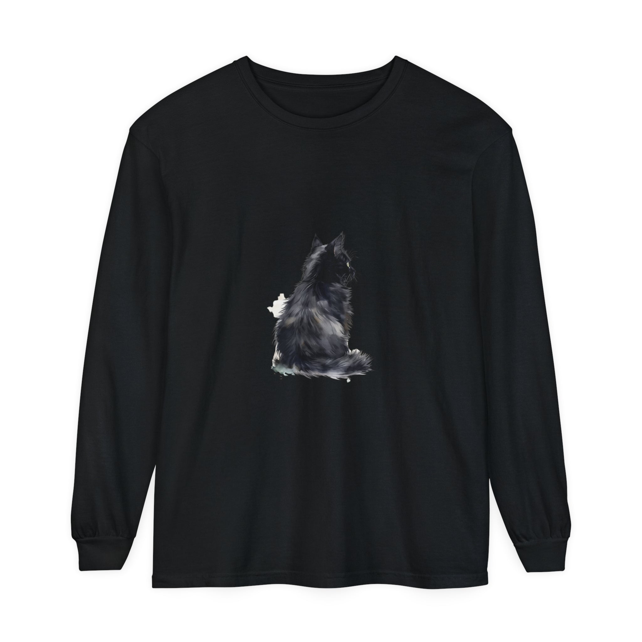 Embrace the charm of a whimsical black cat silhouette nestled against soft pastel hues, inviting a sense of playful elegance. This captivating tee combines artistic flair with comfortable wear, making it a standout pi...