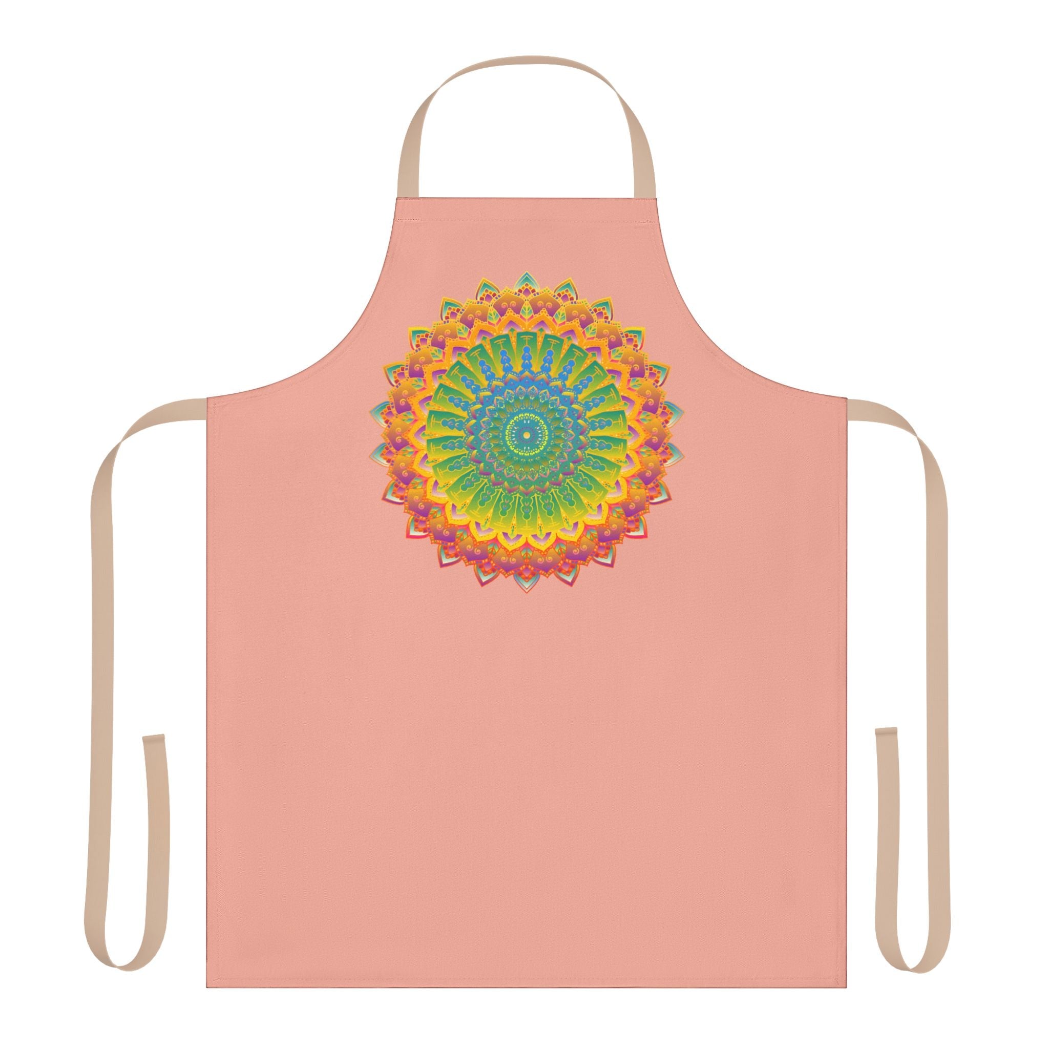 Apricot Mandala Kitchen Apron Featuring Dynamic Colorful Design