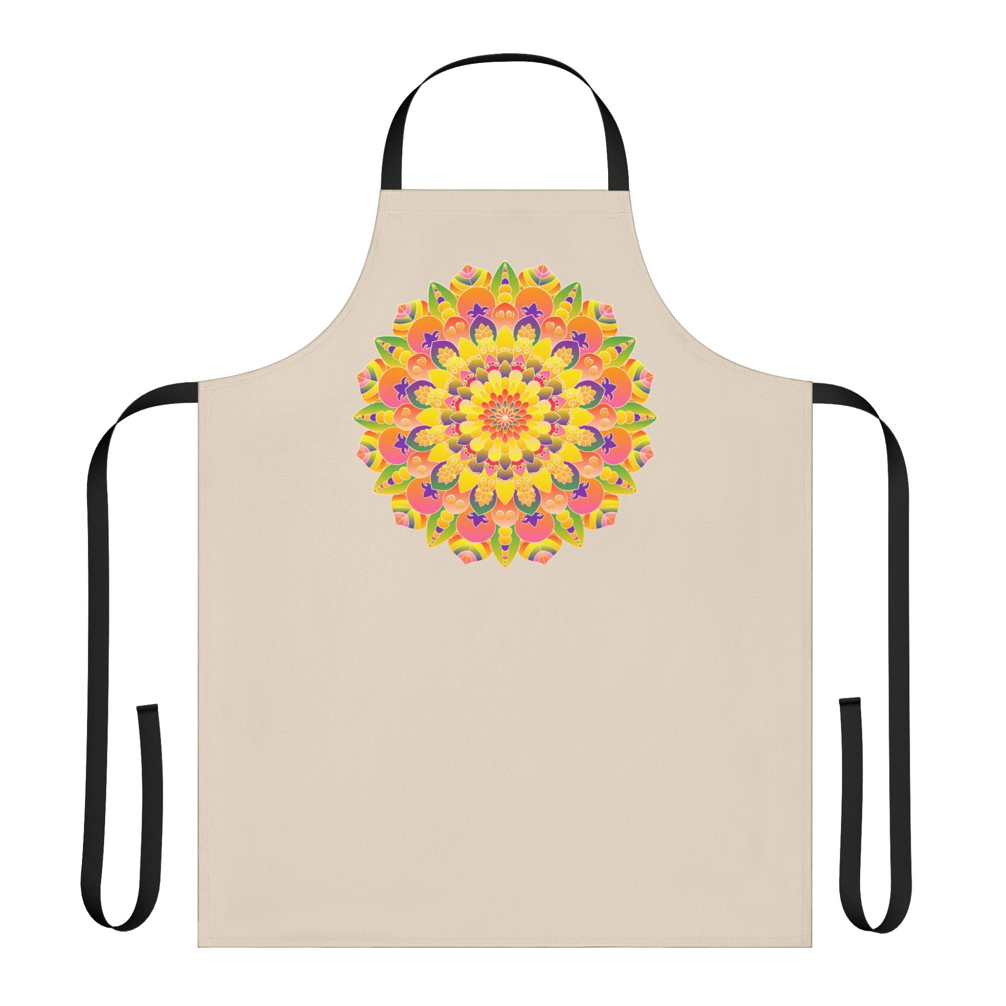 Delight in the vibrant embrace of this apron, adorned with a stunning mandala design that bursts with energy and color. Each intricate pattern showcases a symphony of floral motifs, exuding a joyful spirit that transforms your kitchen into a canvas of creativity. Crafted to inspire, this colorful kitchen accessory captures the essence of artistic living, making each cooking adventure a celebration of color.