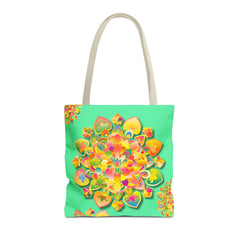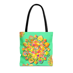Floral Mandala Tote Bag — Bright Tropical Green All-Over Print