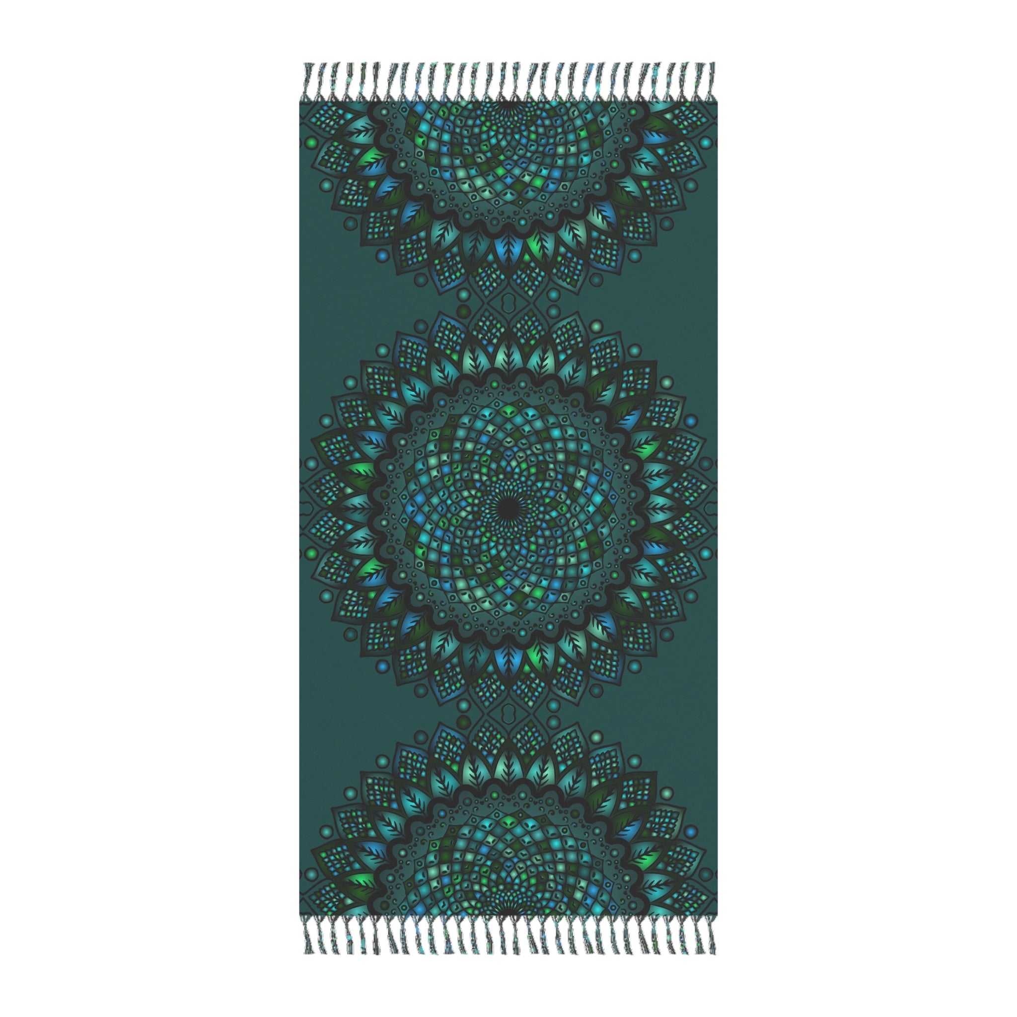Immerse yourself in the captivating allure of vibrant mandala art with this stunning beach cloth, where intricate patterns and a rich petroleum green hue come together to create a tapestry of relaxation. Each mandala draws you in, its detailed design radiating serenity and a sense of adventure, making your beach outings feel like a luxurious getaway.