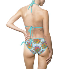 Get ready to turn heads with a bikini that captures the essence of summer joy! This vibrant swimwear features a stunning mandala design, bursting with colors that evoke a sense of adventure and freedom. Each intricate detail of the artwork dances with radiant hues, reflecting your free-spirited personality while you embrace the sun and surf.