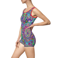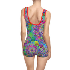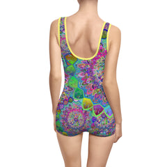 Vintage Swimsuit - Mandala Art Design in Purple, Blue, and Green