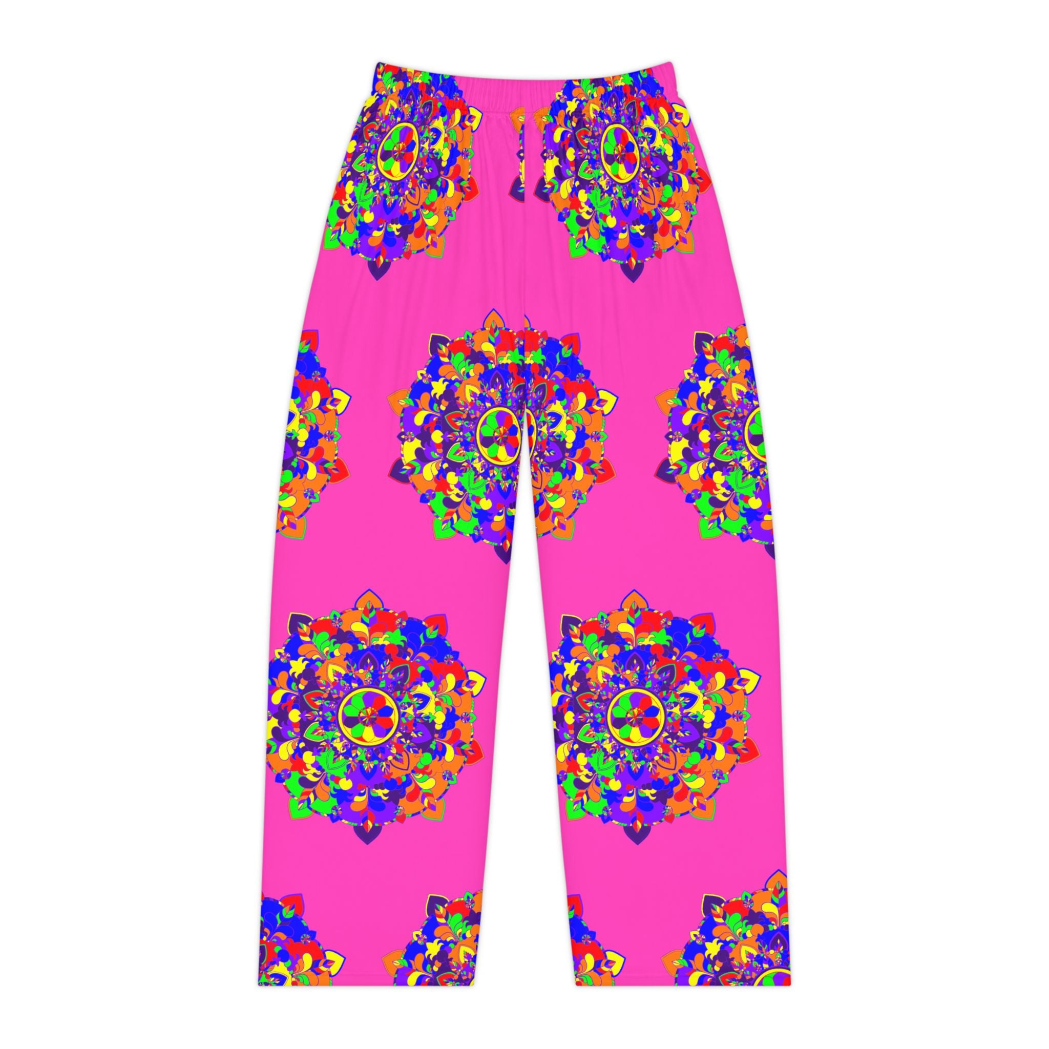 These women's pajama pants feature a vibrant mandala fluo art and fuchsia design, bringing a pop of color and fun to bedtime. Made of 100% brushed polyester, these pants offer a soft hand-feel and a comfortable elastic waistband. Perfect for lounging or sleeping, these pants are a great addition to any woman's sleepwear collection. Ideal for those who love bright colors and unique designs. Perfect for holidays, sleepovers, or relaxing weekends at home.