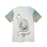 A quiet, warm illustration that reads like a personal habit: soft mornings, slow coffee, and a cat curled into the edges of your routine. Wearing this feels calm and a little slyly proud — an easy way to show homebody...