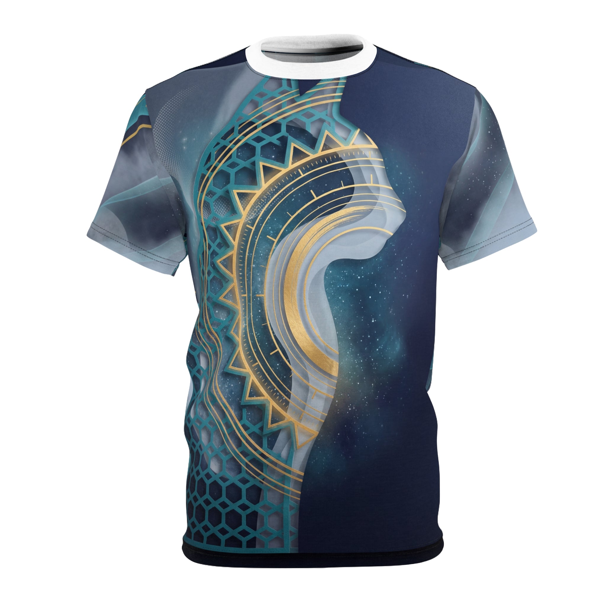 Put this on and carry a quiet gravity. The design settles like a ritual: cool, ordered, and slightly uncanny. It calms the shoulders and sharpens the edge of thought — a wearable talisman that reads as composed confidence rather than costume. The layered forms catch light and flatten time, so you feel both grounded and subtly elevated. For days when you want to move through rooms with a private ritual of stillness, this piece is the background feeling that follows you.
