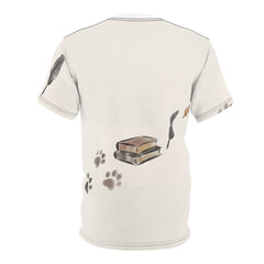 Wearing this cat t-shirt, you feel quietly scholarly and warmly nostalgic — like settling into a dim library corner with a loyal companion draped across your lap. It makes your posture calmer, your thoughts more deliberate, and your smile a private knowledge. The design wraps you in a cozy, contemplative confidence that invites slow conversation and small rituals.
