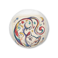 Placing this round cat artwork in the room instantly lightens the mood — playful, dreamy, and quietly comforting. You’ll feel an invitation to sit down and linger: the curled, looping cat form welcomes rest and small smiles, while the bright palette lifts the corner of any room. It makes lounging feel whimsical and cozy, a cheerful focal point that sparks delight every time you use it.