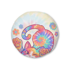Placing this bright tie-dye cat cushion in a room feels like inviting a cheerful, purring friend into your space — it instantly warms a reading nook, brightens a sofa corner, and makes lounging feel playful. The vibrant colors lift the mood; the friendly cropped kitty pose invites naps, cuddles, and smiles every time you sink into it.