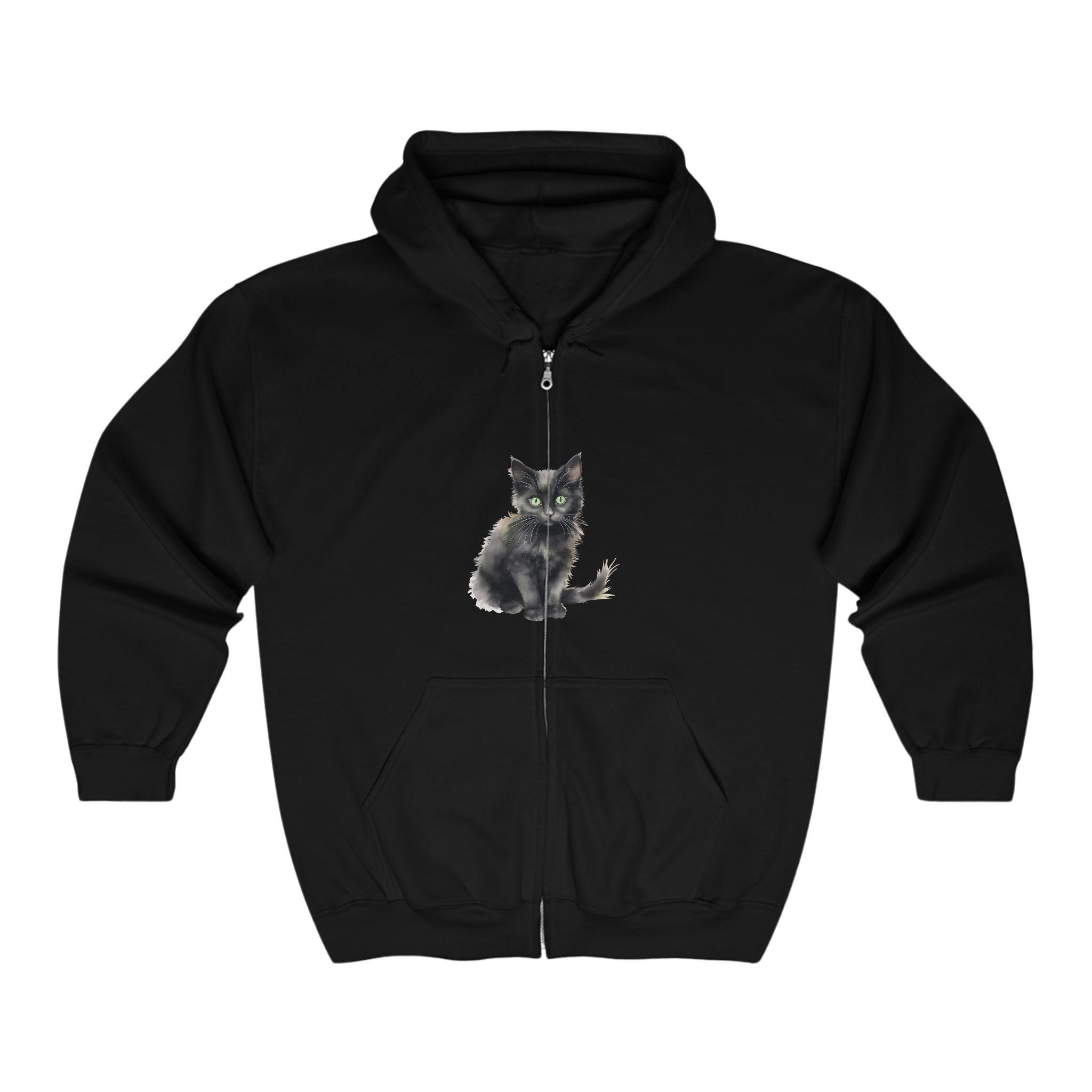Step into a world of enchantment with this captivating hoodie, adorned with a striking black cat featuring mesmerizing green eyes. The elegance of the feline design evokes a sense of mystery and charm, making it a perfect expression of your unique style. This cozy hoodie beautifully combines comfort with artistic flair, making it an essential addition to your wardrobe.