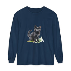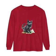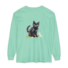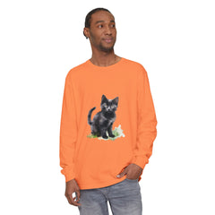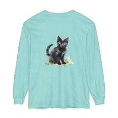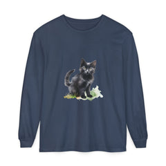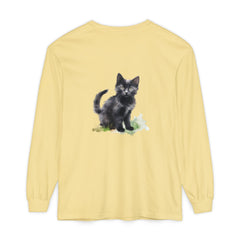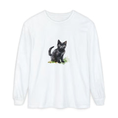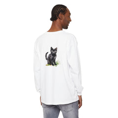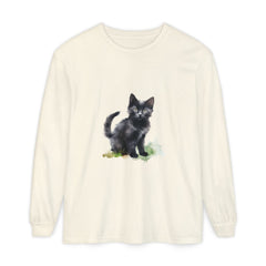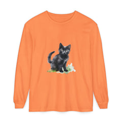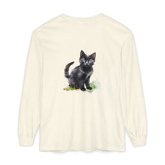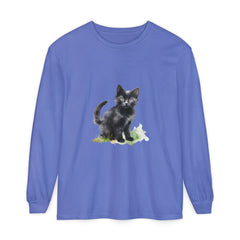 This unique long sleeve tee features a stunning watercolor painting of a black cat, bringing a touch of whimsy and elegance to your wardrobe. Perfect for cat lovers and art enthusiasts alike!