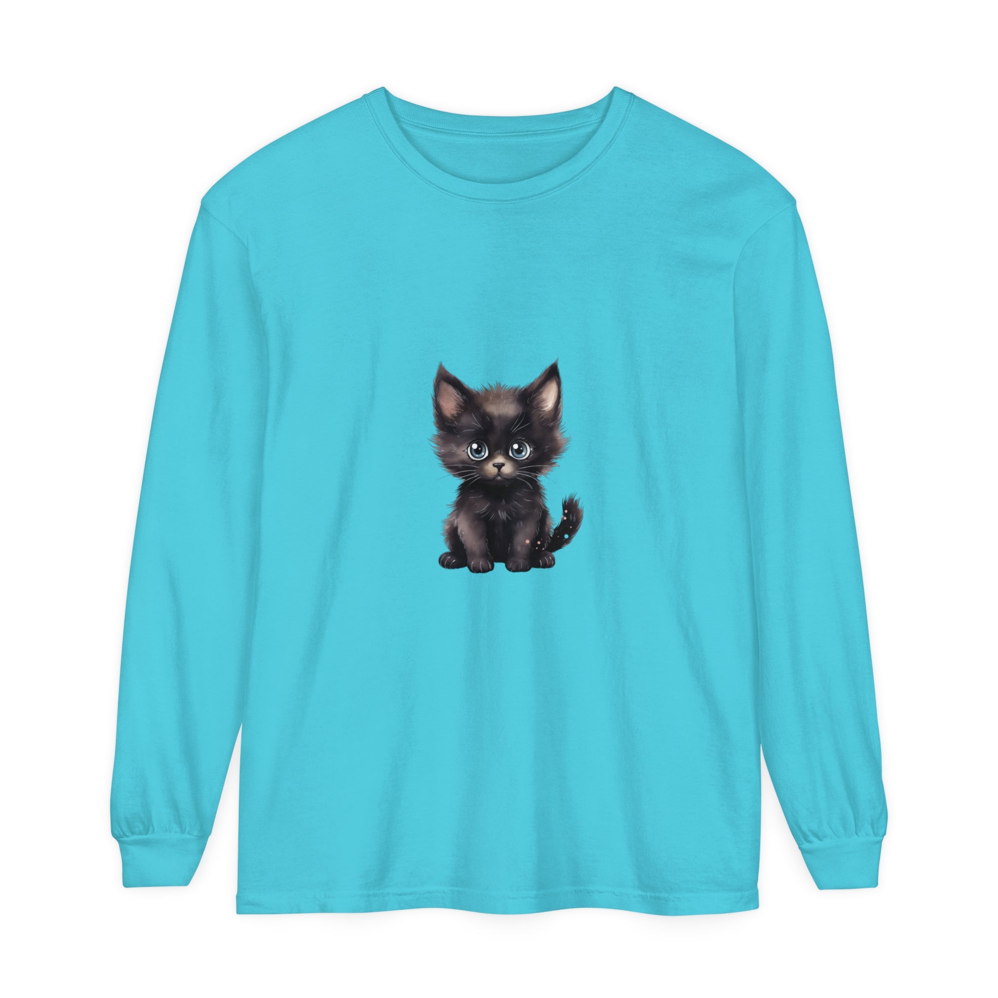 Blue-Eyed Kitten Long Sleeve T-Shirt for Cat Lovers - Playful Comfort Awaits