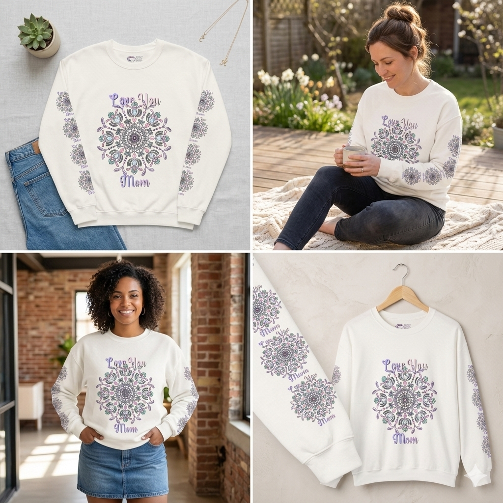 Mandala Sweatshirt for Mom with Heartfelt Design in Soft Hues