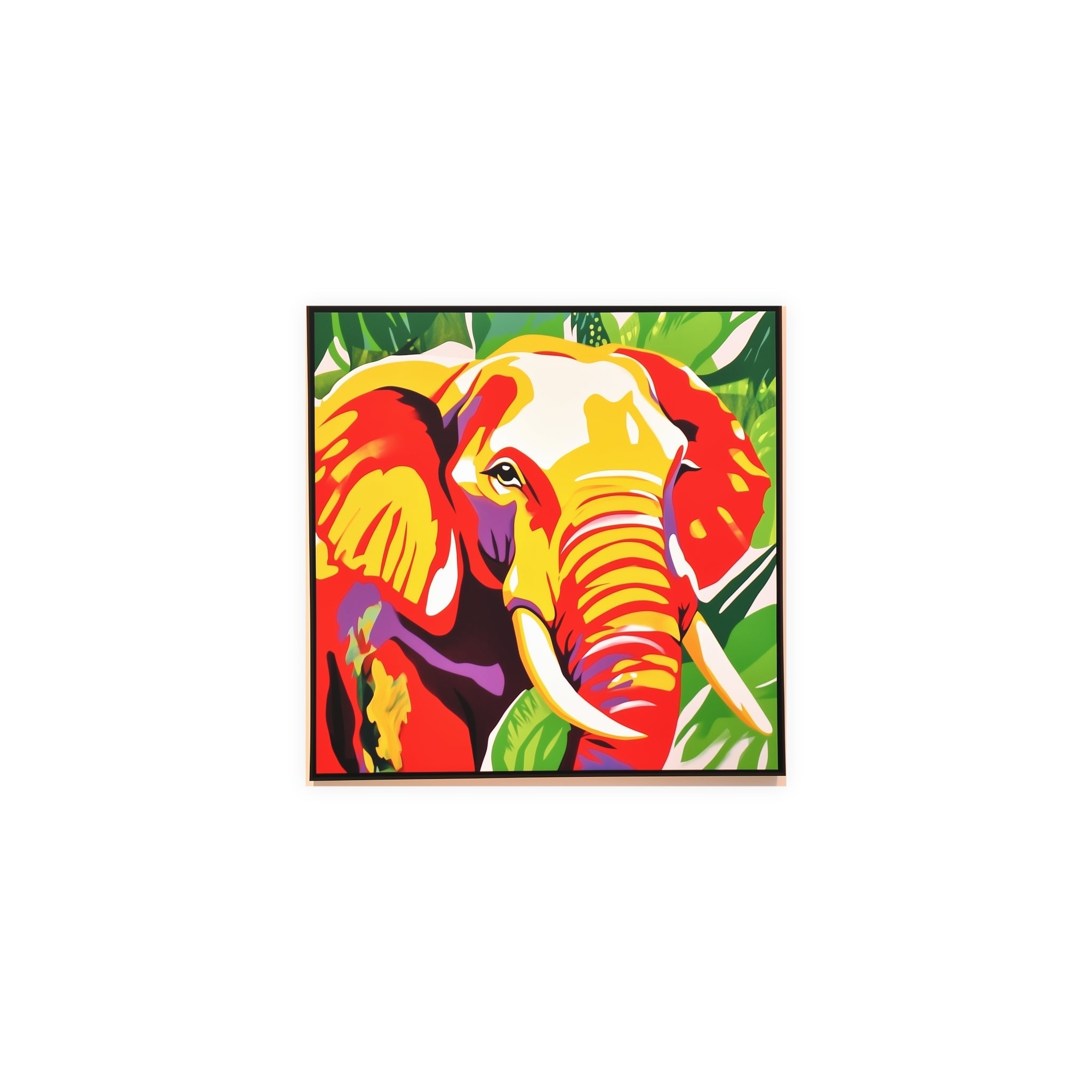 Experience the vibrancy of the savanna with this captivating abstract elephant art piece. Bursting with color, the majestic figure of the elephant takes center stage, surrounded by lush greenery that amplifies its striking presence. Each brushstroke and hue merges traditional artistry with a modern flair, creating a visual feast that evokes a sense of wonder and vitality in your space.