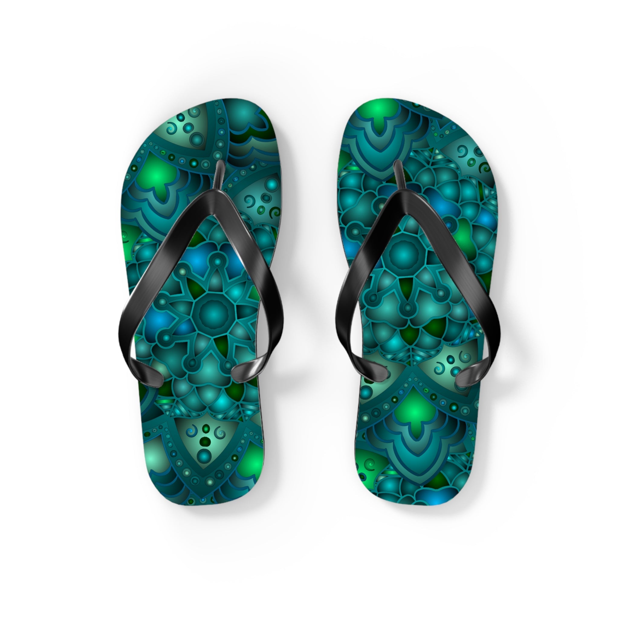 Tranquil Blue & Green Mandala Flip Flops for a Zen Experience