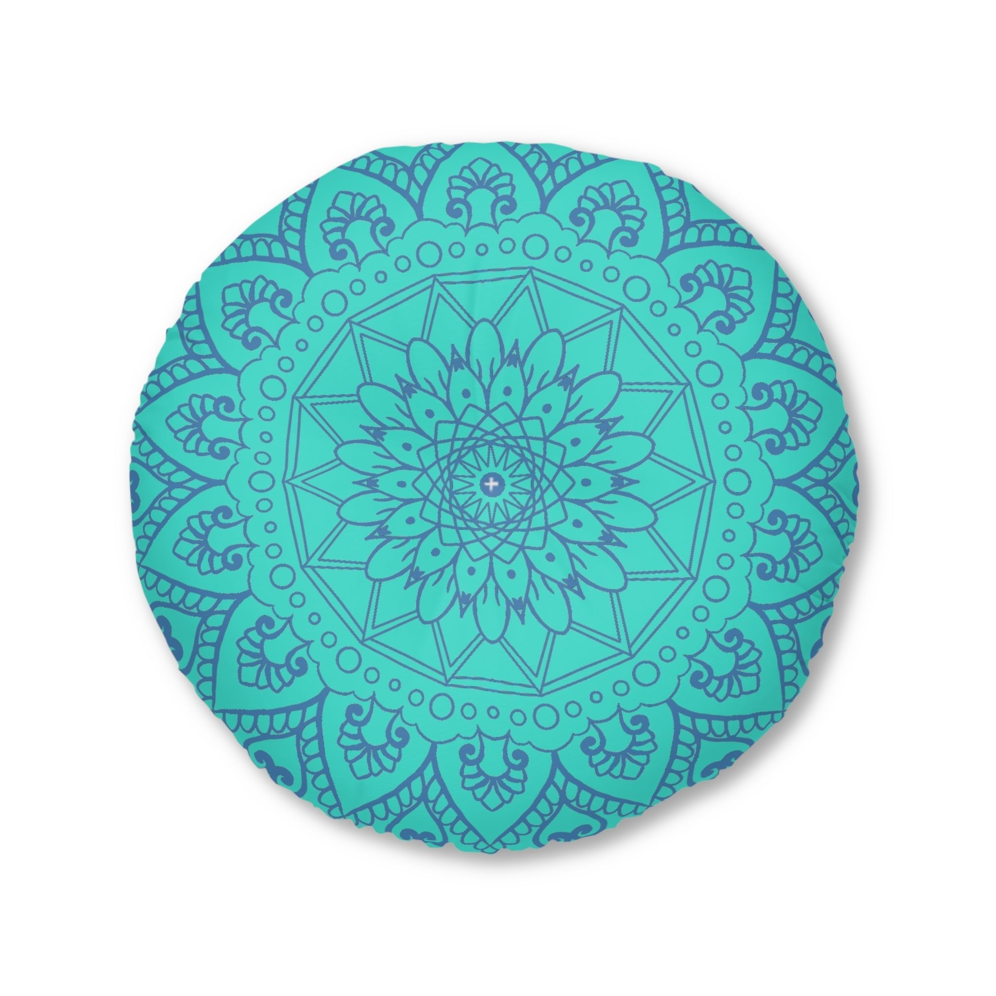 Infuse your space with the calming essence of a mesmerizing mandala, beautifully illustrated in steel blue against a vibrant turquoise backdrop. This captivating floor cushion is not just a cozy accessory; it’s a radiant piece of art that transforms any corner of your home into a serene retreat, inviting tranquility and mindfulness into your daily life.