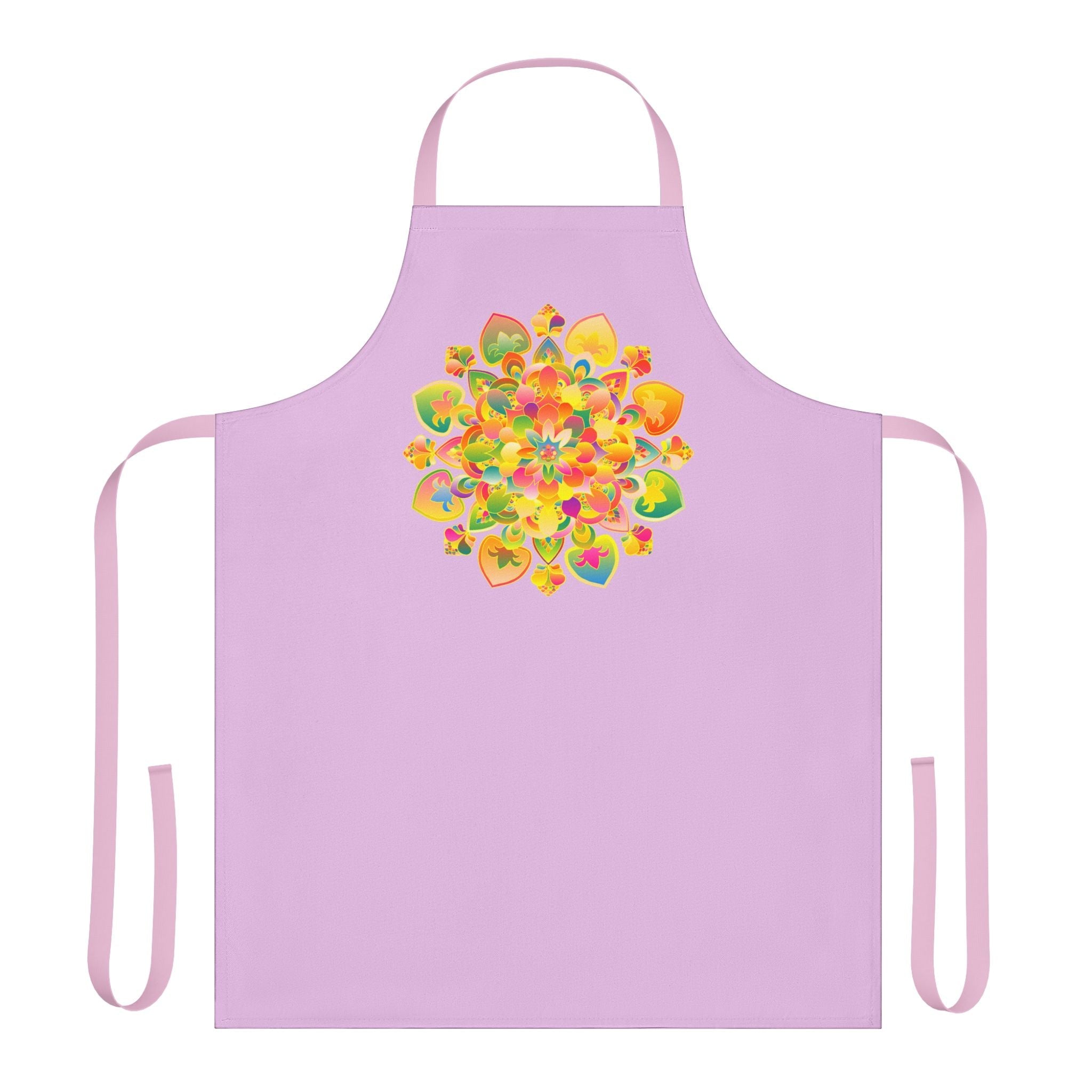 Brighten your culinary escapades with this enchanting lilac floral mandala apron, where art meets the heart of the kitchen. The vibrant mandala design bursts with color, seamlessly blending playful yellows, greens, and pinks, creating a cheerful aura that uplifts your cooking moments. Each intricate petal and swirl invites you to embrace creativity, making every meal feel like a celebration.