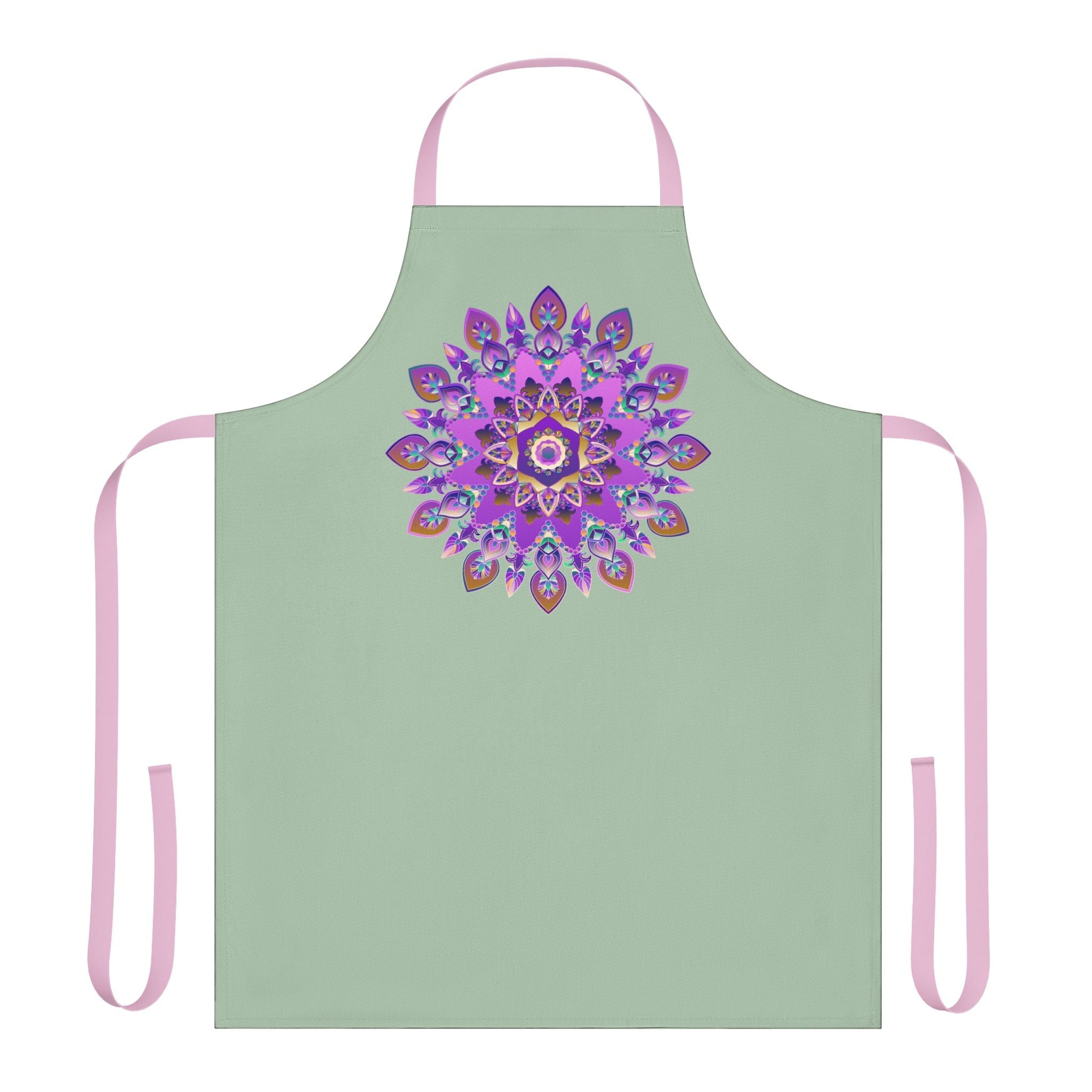 Sage Green Mandala Design Apron with Elegant Purple Accents