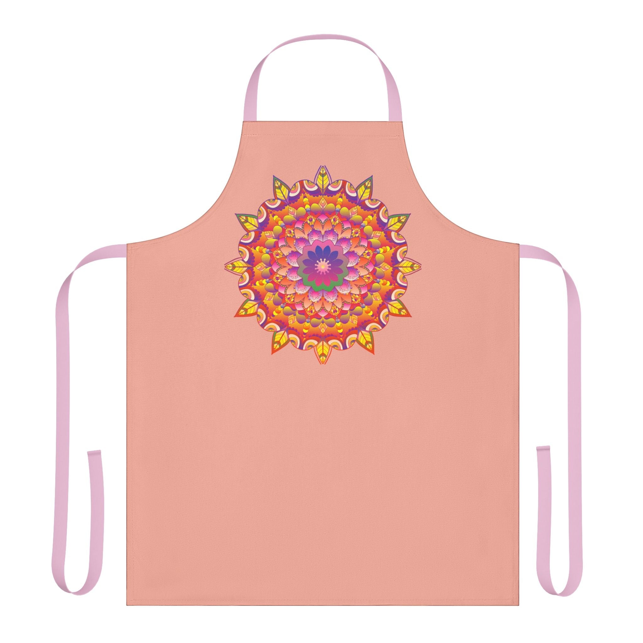 Unleash your culinary creativity with an enchanting apron that transforms your kitchen into a vibrant canvas. The exquisite mandala design in apricot blossom captivates the senses, with intricate patterns that dance across the fabric, inviting a sense of joy and inspiration every time you wear it. This artistic piece not only protects your clothing but also turns ordinary cooking or crafting moments into extraordinary experiences.
