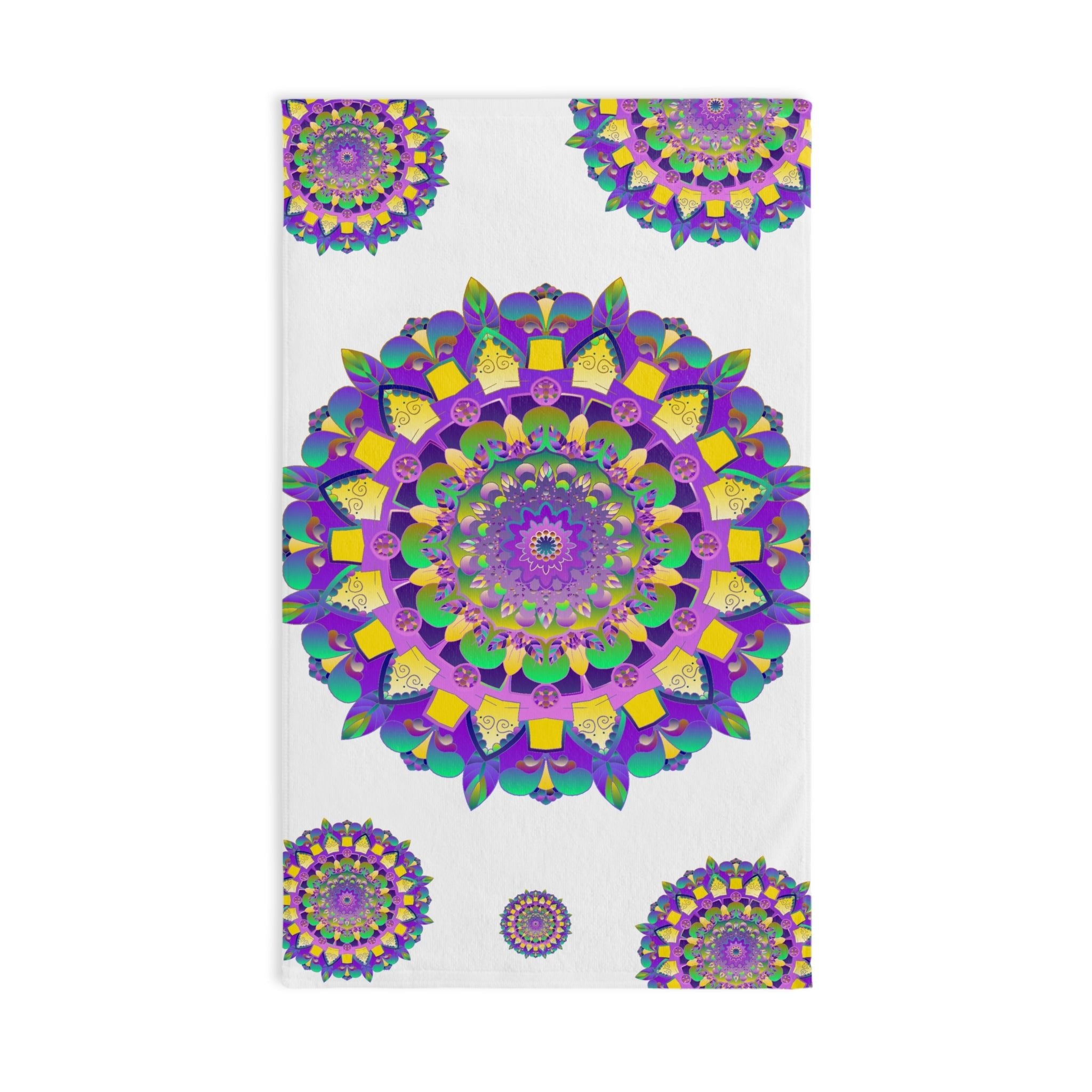 Experience a visual delight with this vibrant towel featuring an intricate purple mandala design that bursts with life and elegance. The beautifully illustrated motifs, adorned in rich hues of purple, green, and yellow, evoke feelings of tranquility and creativity. Each element is carefully crafted, transforming your space into a sanctuary that celebrates beauty and mindfulness.