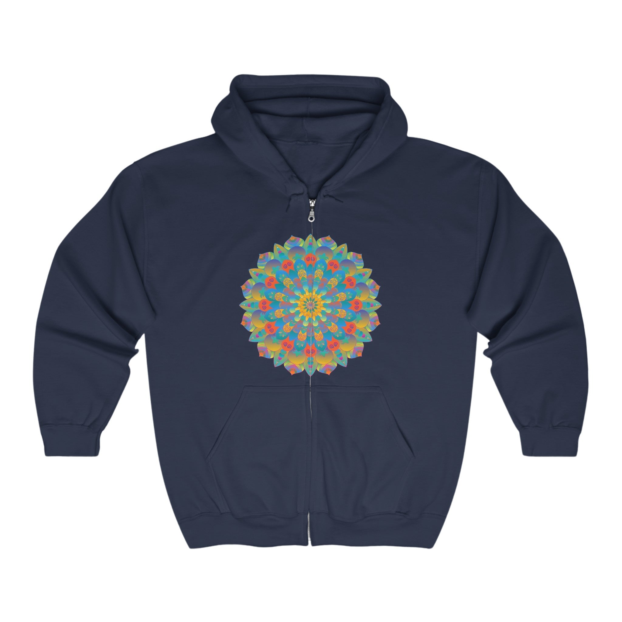 Embrace the vibrant energy of art with this stunning hoodie, featuring an intricate mandala design that bursts with life and color. Each bold blue and warm hue harmonizes beautifully, creating a visual tapestry that draws the eye and sparks conversation. This is more than clothing; it’s an artistic statement that reflects your unique spirit.
