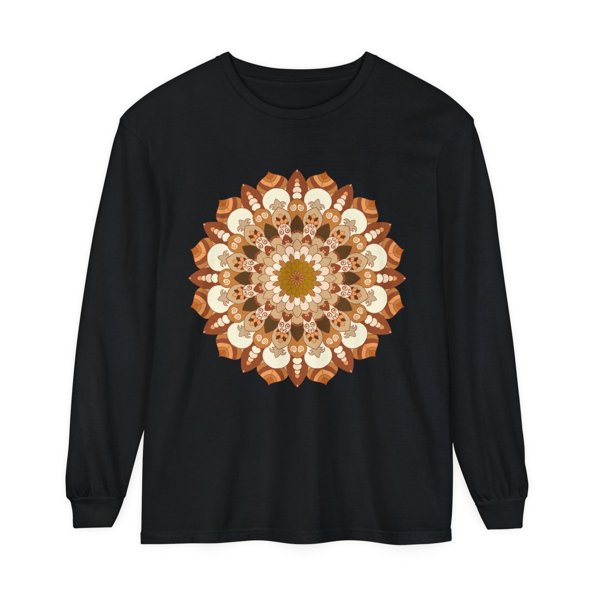 Intricate Mandala Design Long Sleeve T-Shirt in Warm Tones