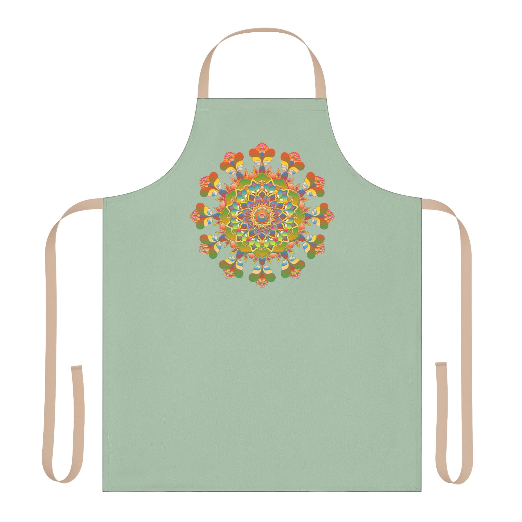 Experience the enchanting beauty of this sage green apron, adorned with a stunning mandala design that radiates vibrant energy. The intricate patterns draw you in, evoking a sense of creativity and tranquility as you ...