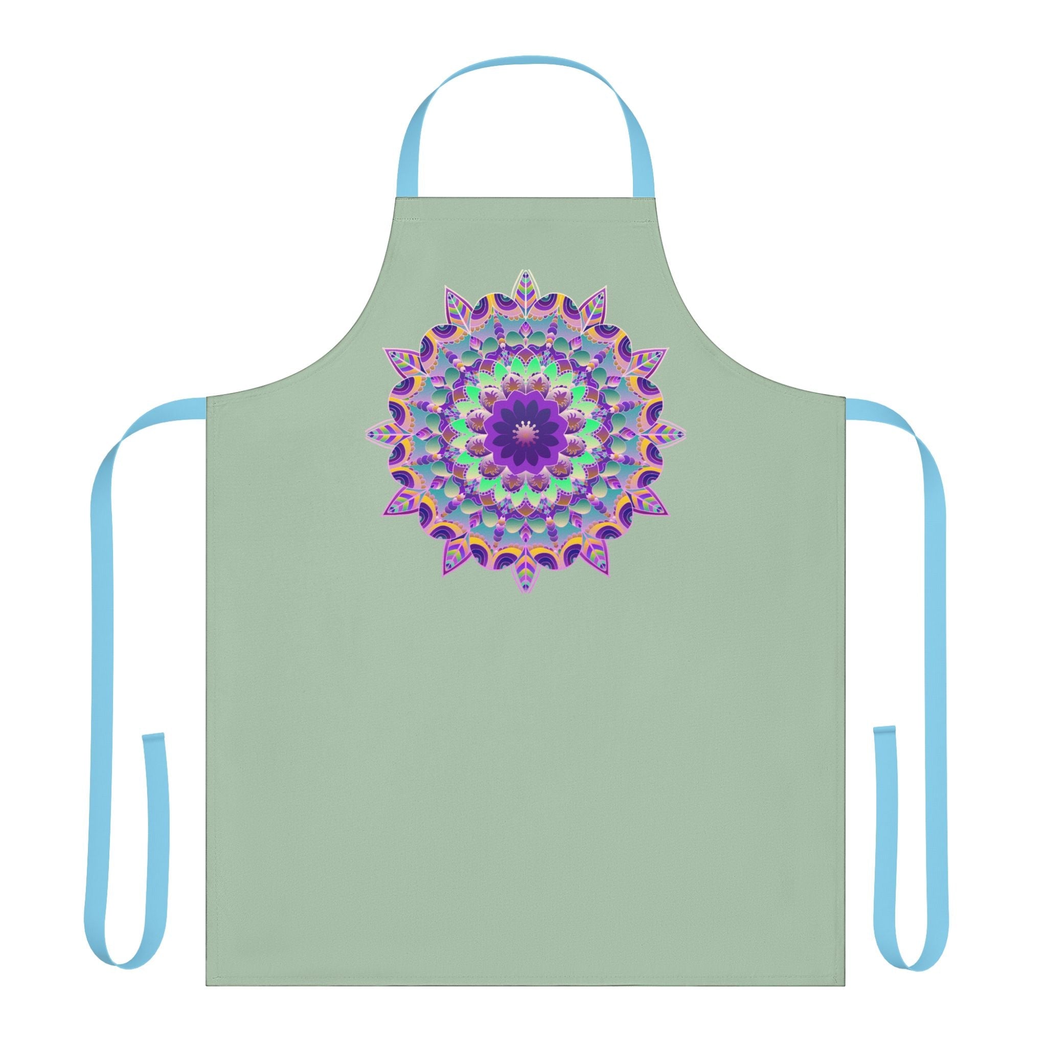 Infuse your culinary adventures with a stunning touch of artistry! The captivating mandala design in vibrant hues captivates the eye, inviting creativity and joy into every cooking or crafting experience. The serene sage green backdrop perfectly complements the intricate, hand-drawn patterns, making this apron not just an accessory but a statement piece that brightens your kitchen.