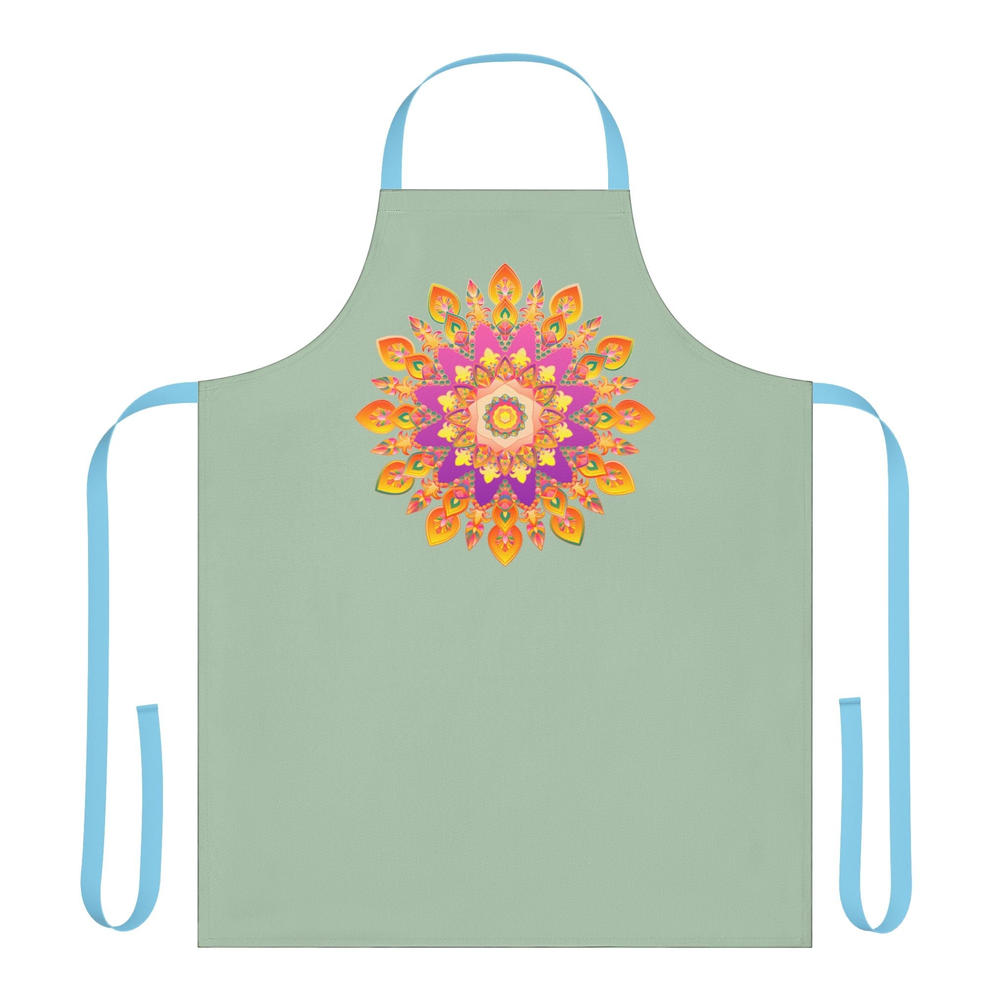 Infuse your cooking space with the enchanting allure of mandala artistry. This sage green apron is adorned with a stunning hand-drawn mandala that radiates warmth and creativity, inviting you to explore a world of culinary delights. The intricate design, bursting with soft pinks and vibrant oranges, sets a playful yet calming mood, transforming your kitchen into a vibrant sanctuary.