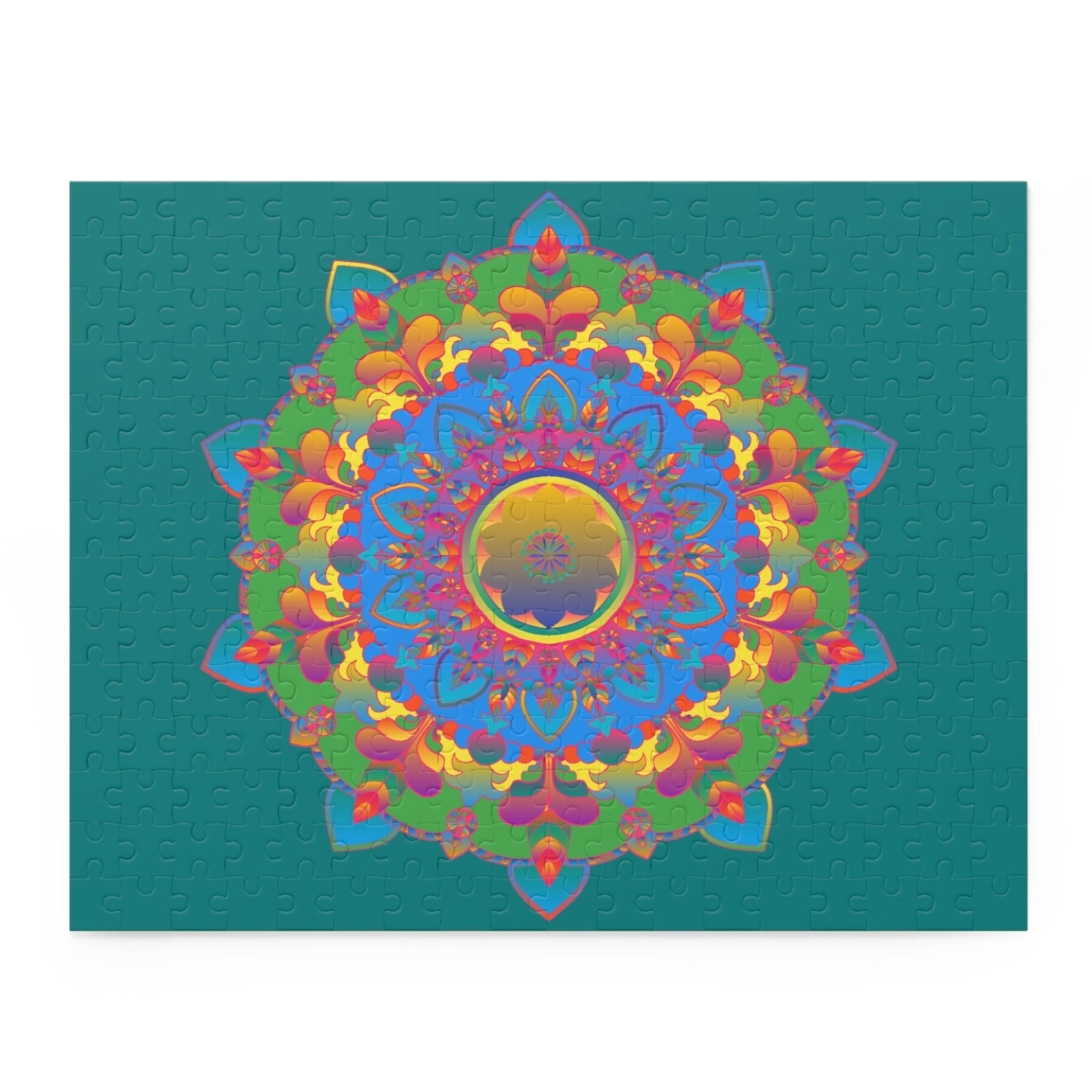 Experience a vibrant world of intricate patterns with this stunning mandala puzzle, featuring a rich tapestry of colors that dance across the teal background. The bold floral motifs radiate tranquility, inviting you into a meditative space that sparks joy and creativity with every piece you connect.