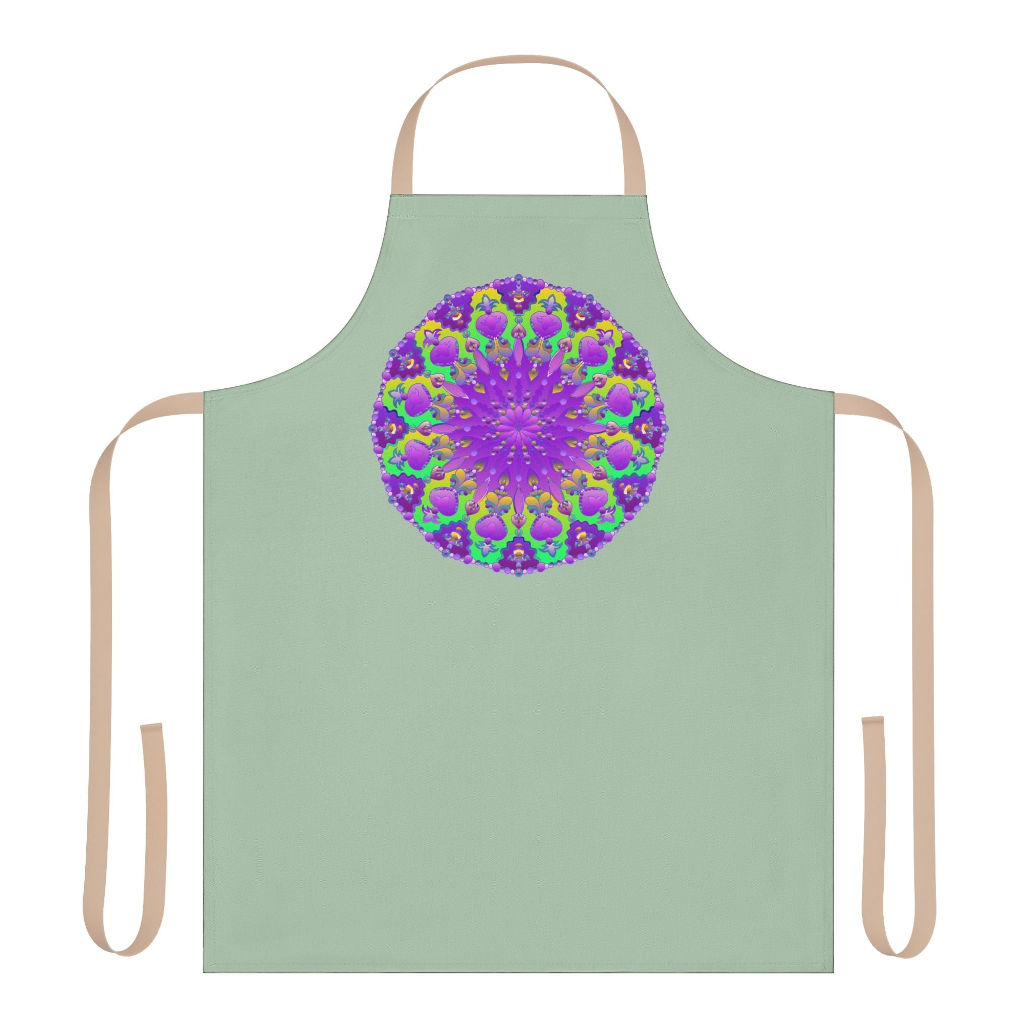 Sage Green Mandala Apron with Whimsical Purple Design