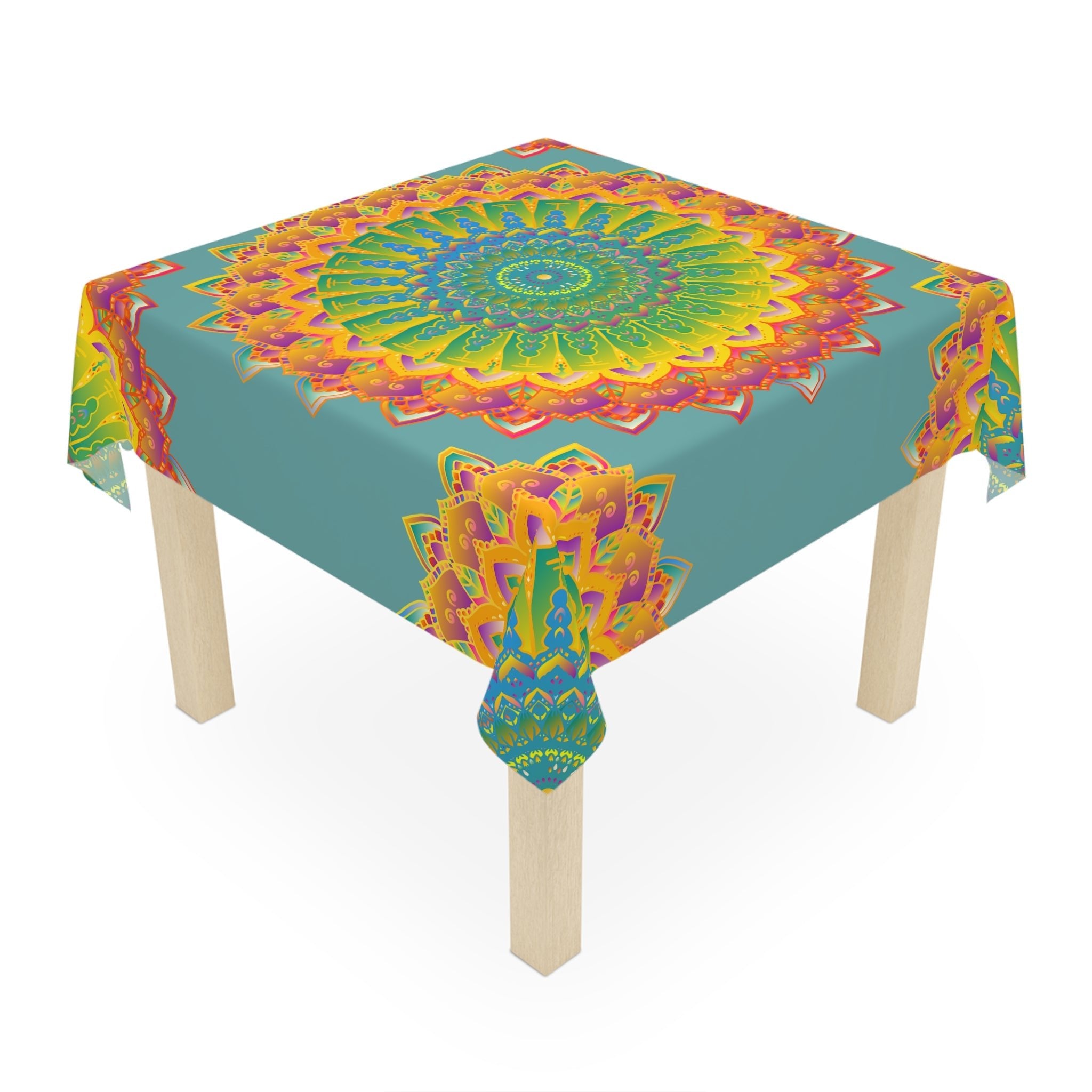 Transform your dining experience with the enchanting allure of vibrant mandalas, perfectly captured in a stunning sage green tablecloth. The intricate circular patterns burst forth in a kaleidoscope of colors, inviting warmth and creativity into your space. This captivating design is not just visually striking; it creates a mesmerizing focal point for gatherings, ensuring your table is both inviting and stylish.