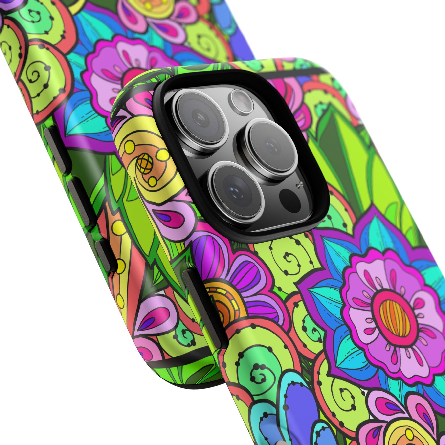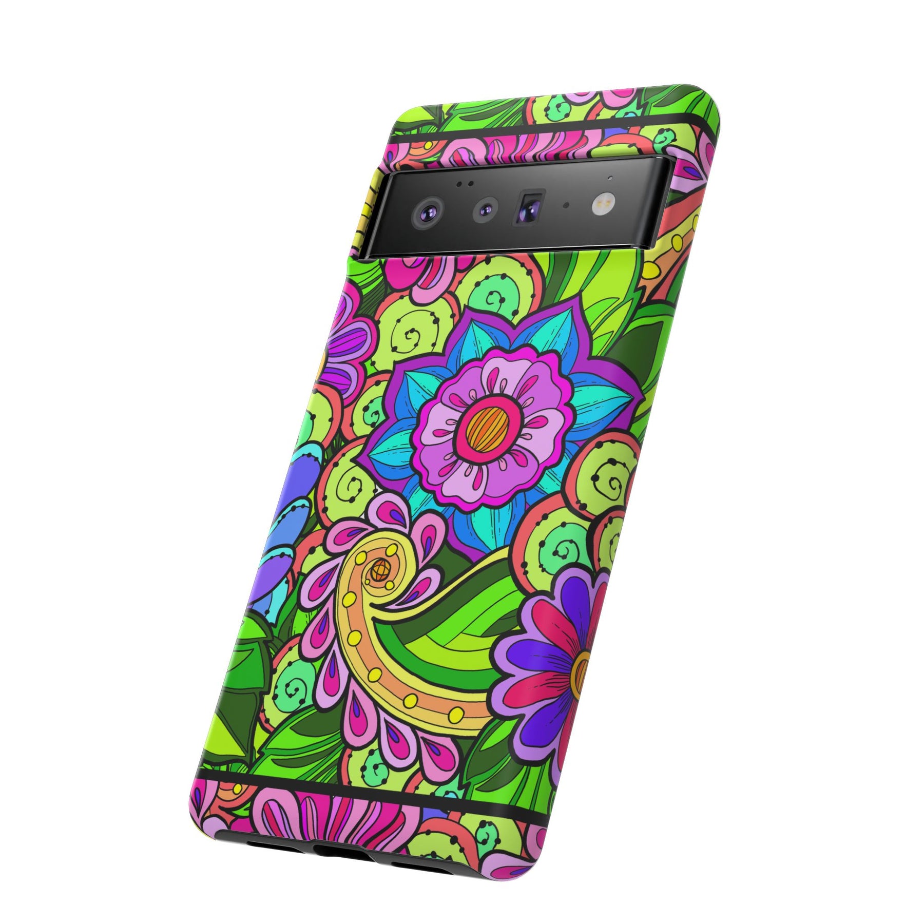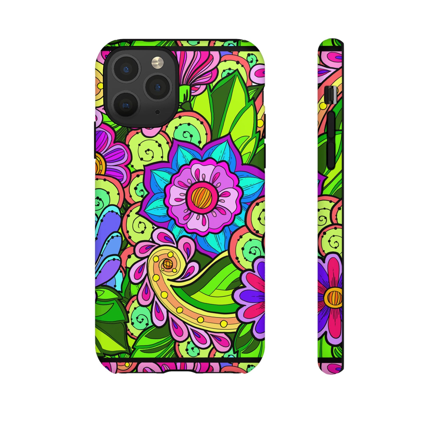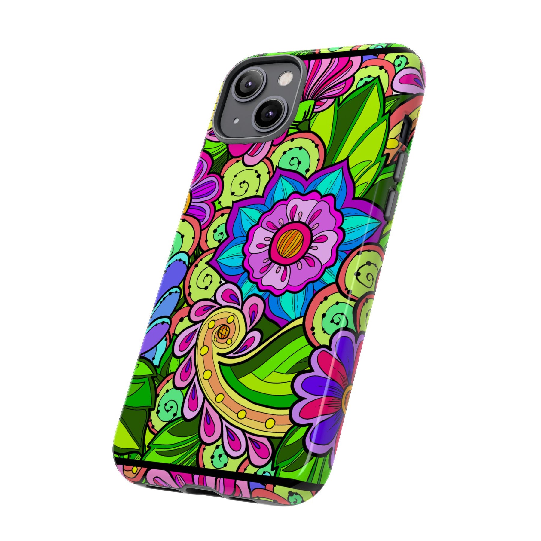 Adorn your phone with a vibrant floral masterpiece that bursts with personality! This stunning case showcases a kaleidoscope of colors, featuring lush flowers in vivid pinks, electric blues, and refreshing greens. It transforms your device into a canvas of art, radiating joy and creativity while providing robust protection for your beloved mobile companion.