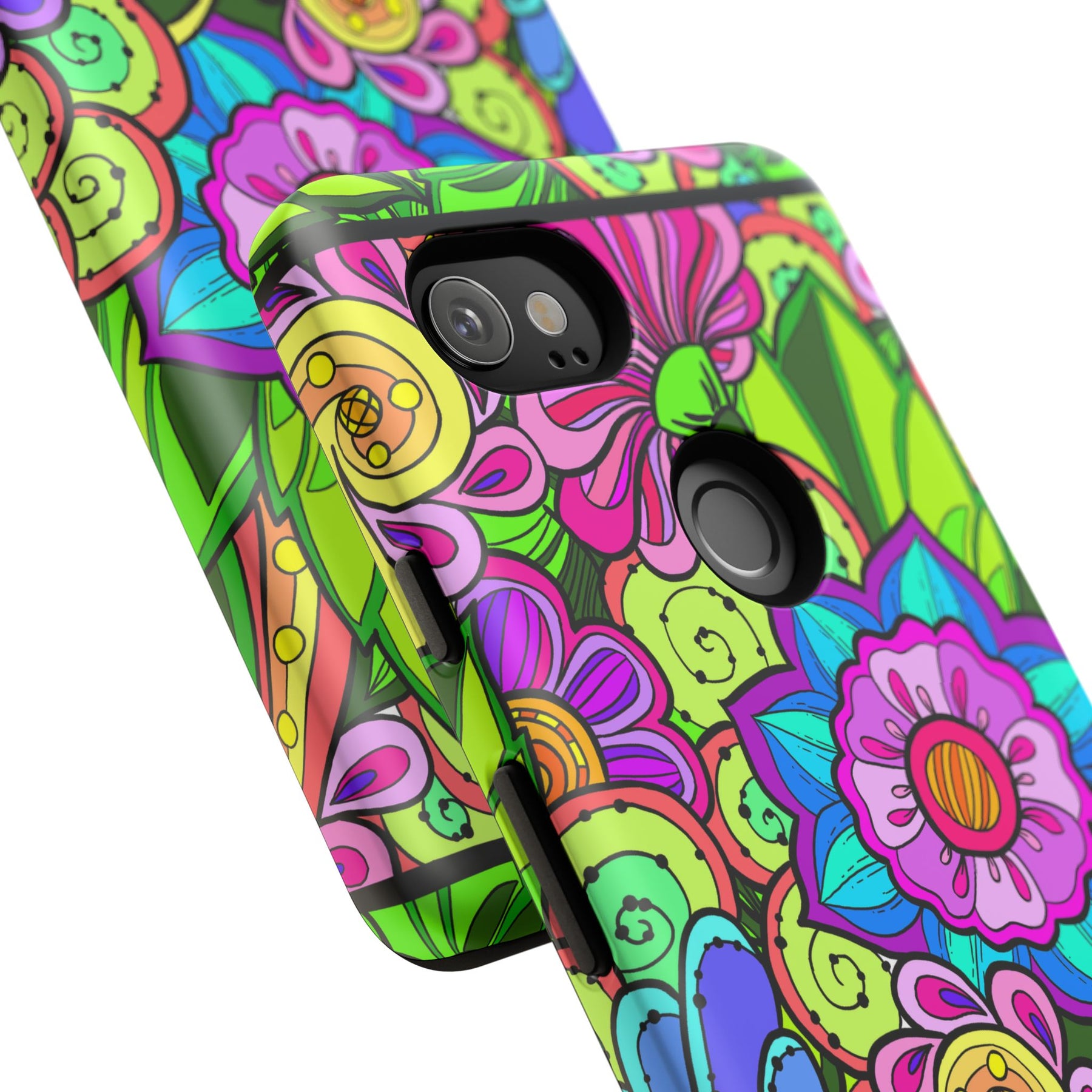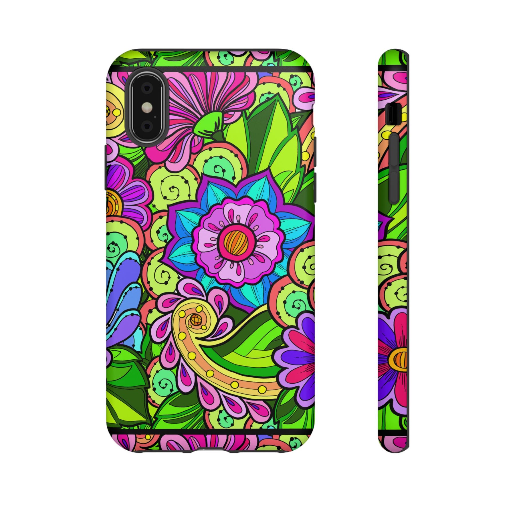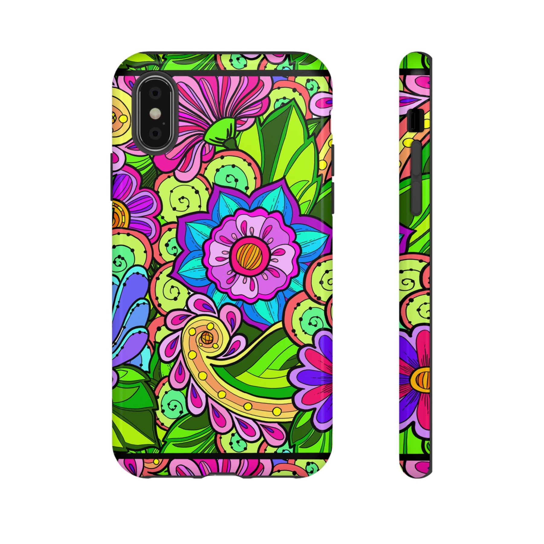Adorn your phone with a vibrant floral masterpiece that bursts with personality! This stunning case showcases a kaleidoscope of colors, featuring lush flowers in vivid pinks, electric blues, and refreshing greens. It transforms your device into a canvas of art, radiating joy and creativity while providing robust protection for your beloved mobile companion.