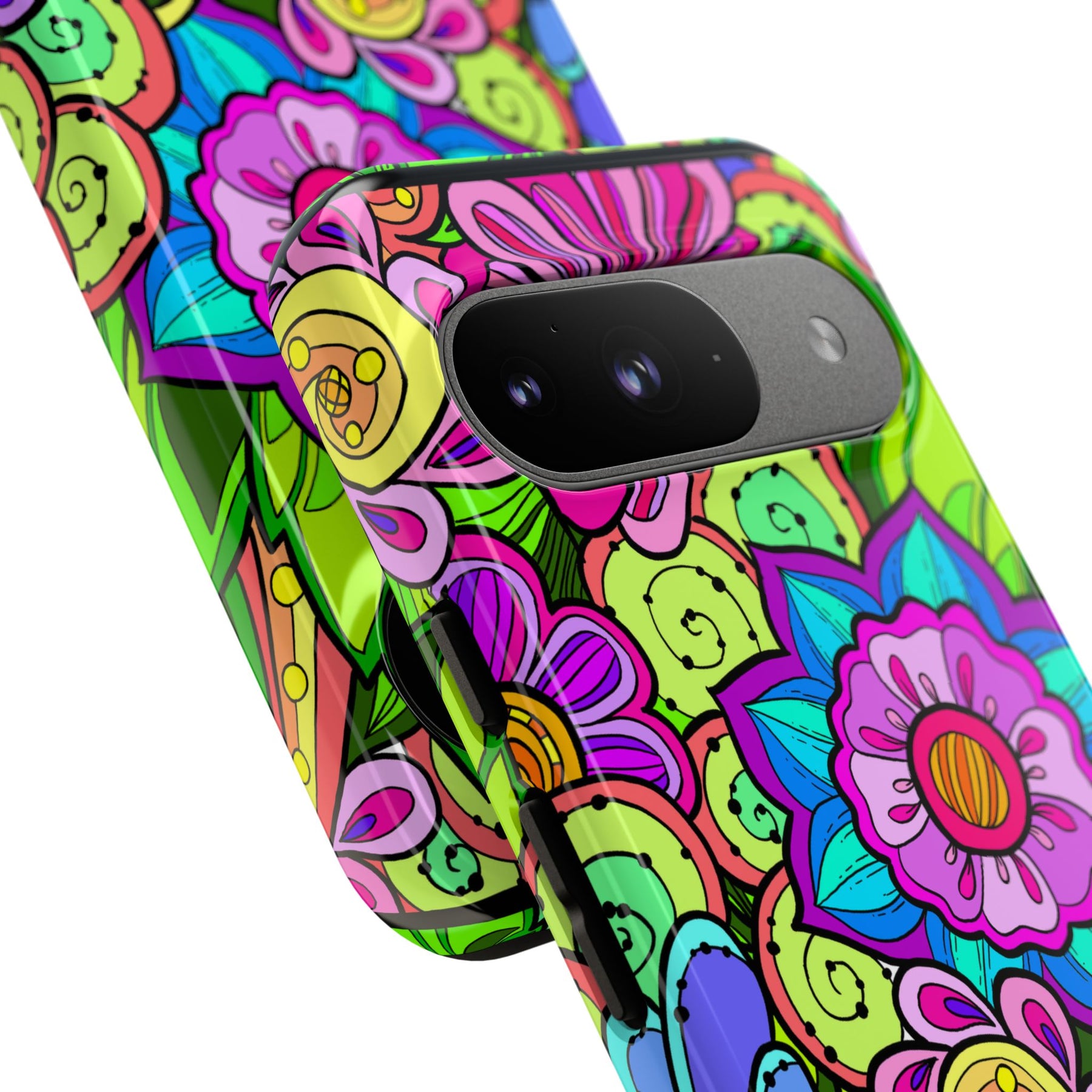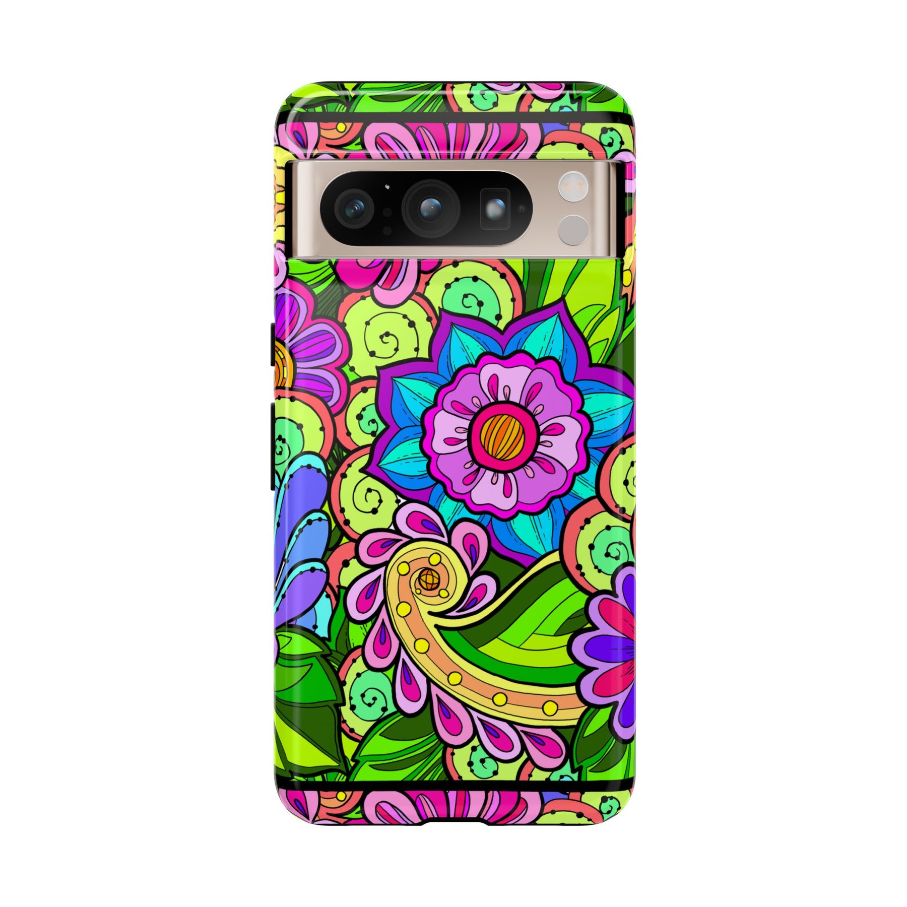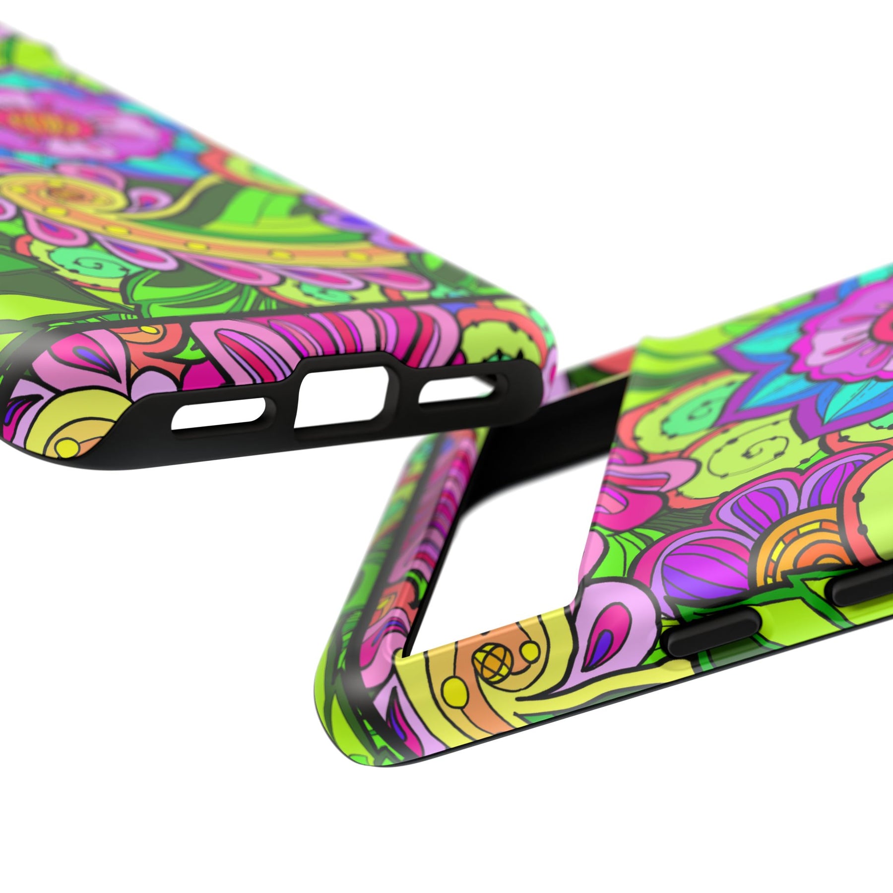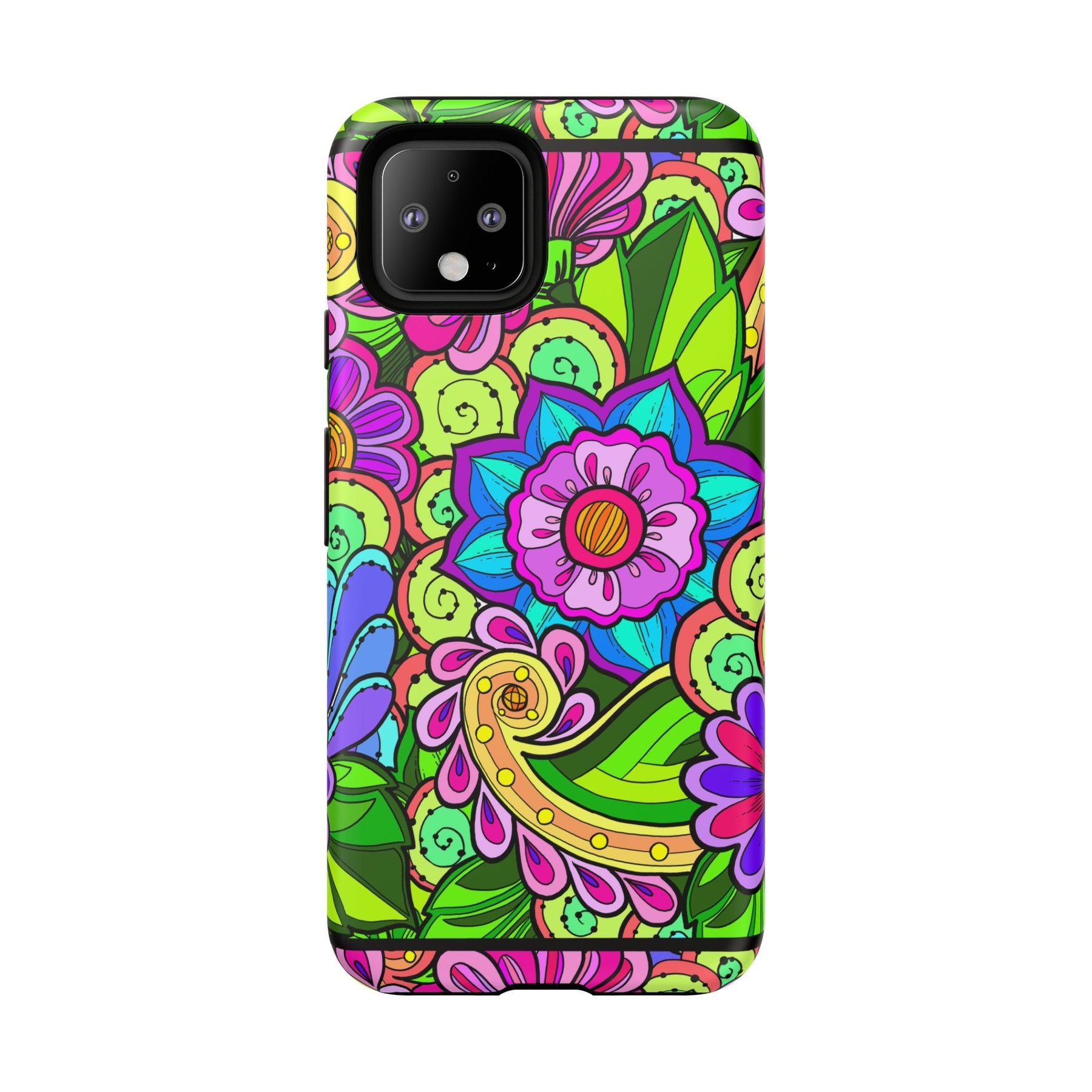 Adorn your phone with a vibrant floral masterpiece that bursts with personality! This stunning case showcases a kaleidoscope of colors, featuring lush flowers in vivid pinks, electric blues, and refreshing greens. It transforms your device into a canvas of art, radiating joy and creativity while providing robust protection for your beloved mobile companion.