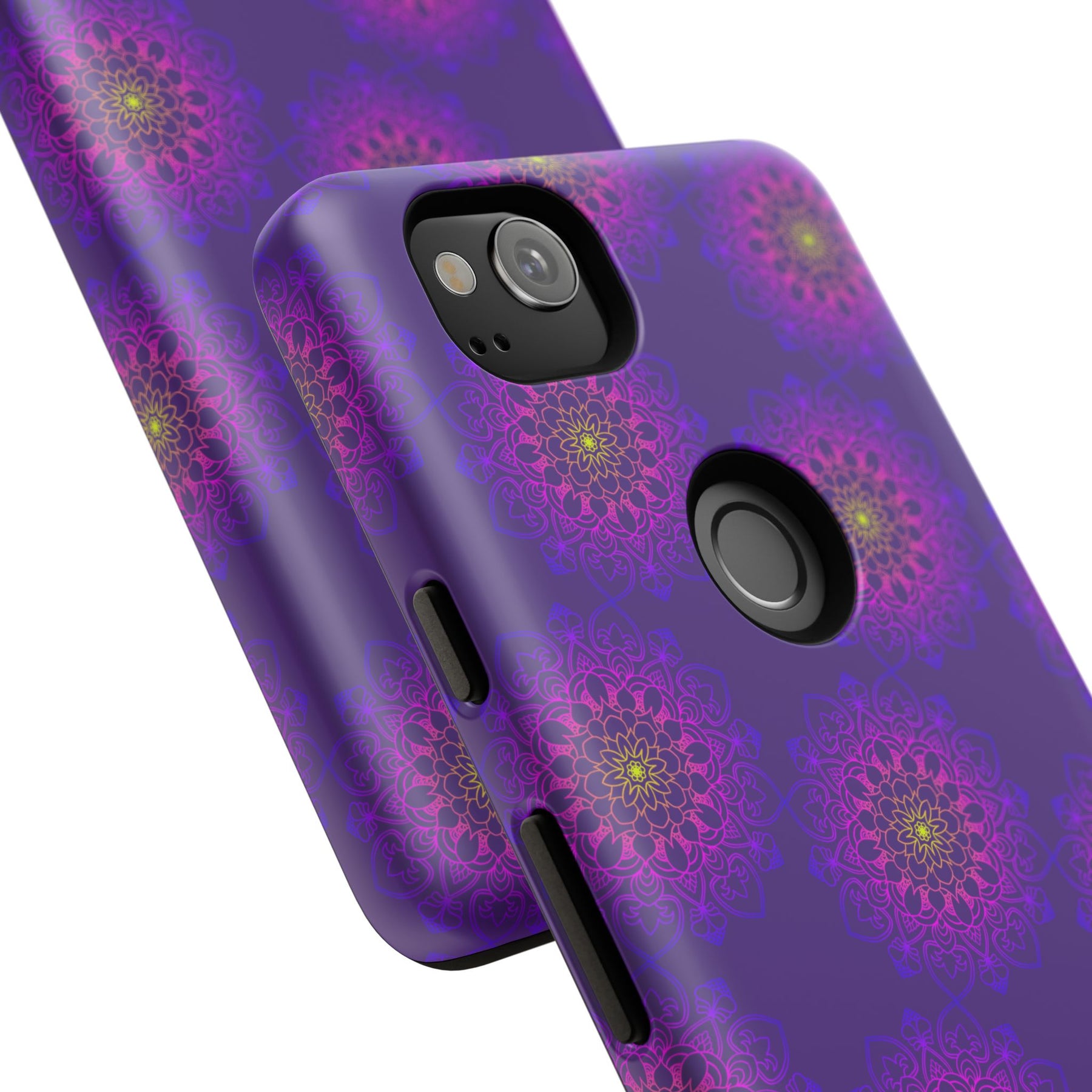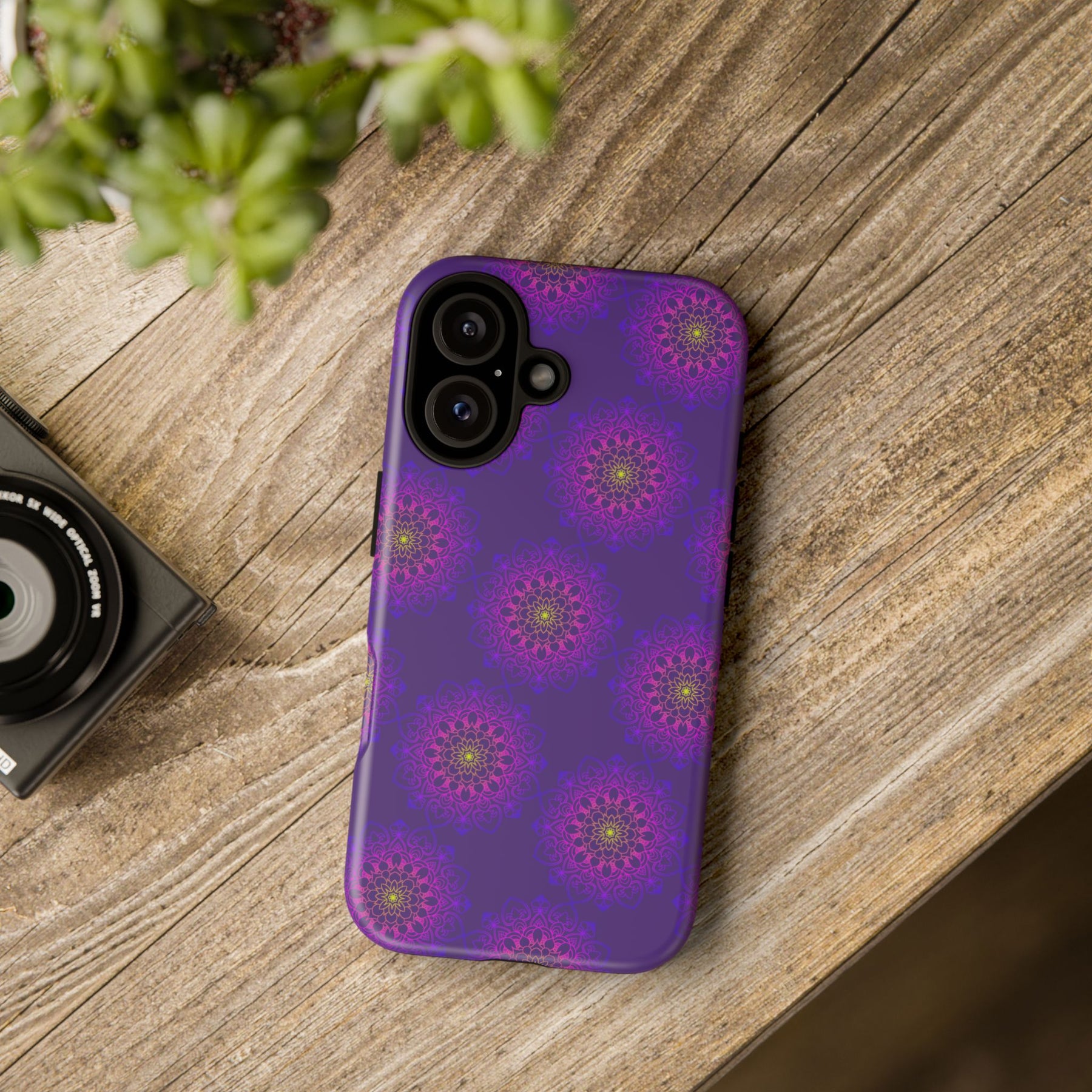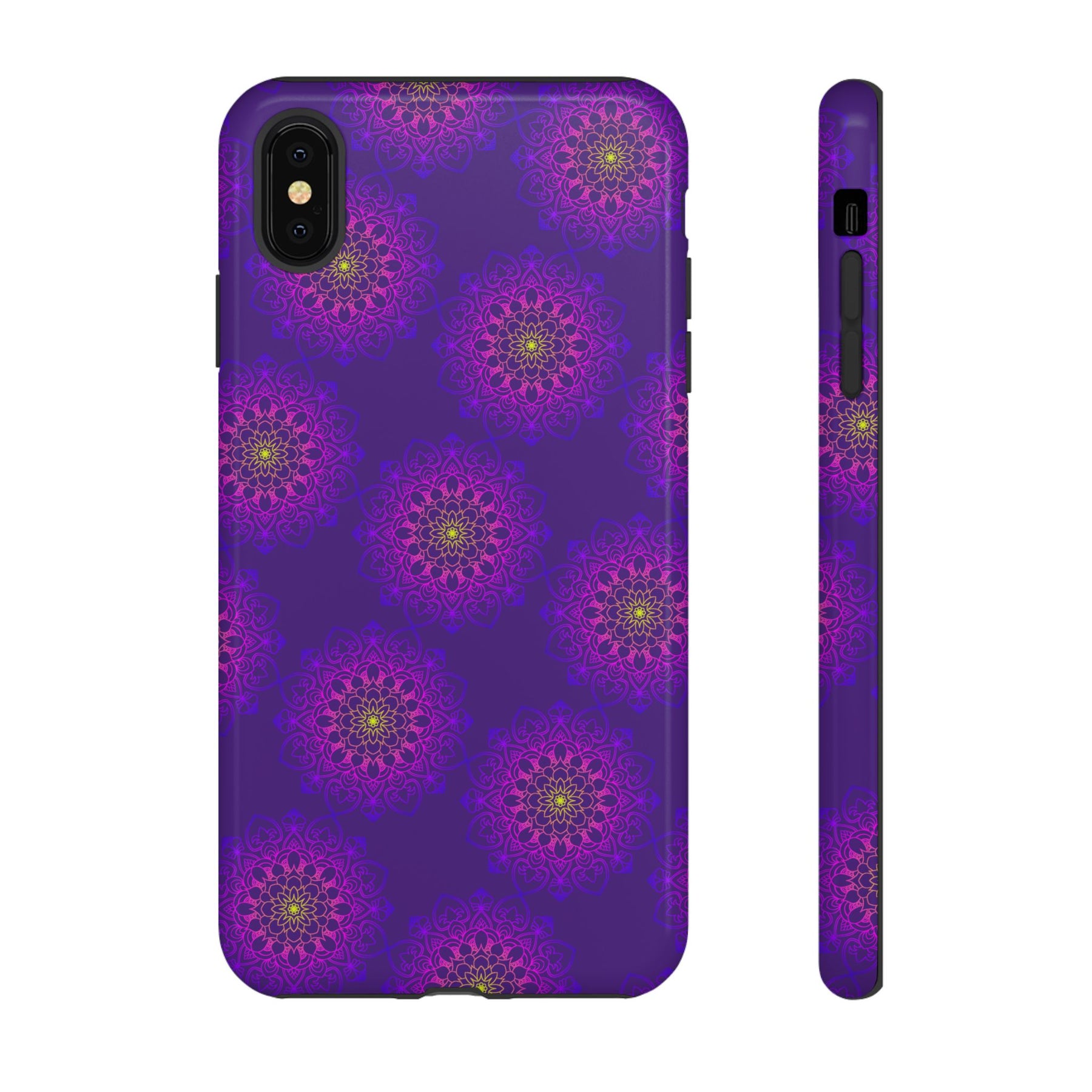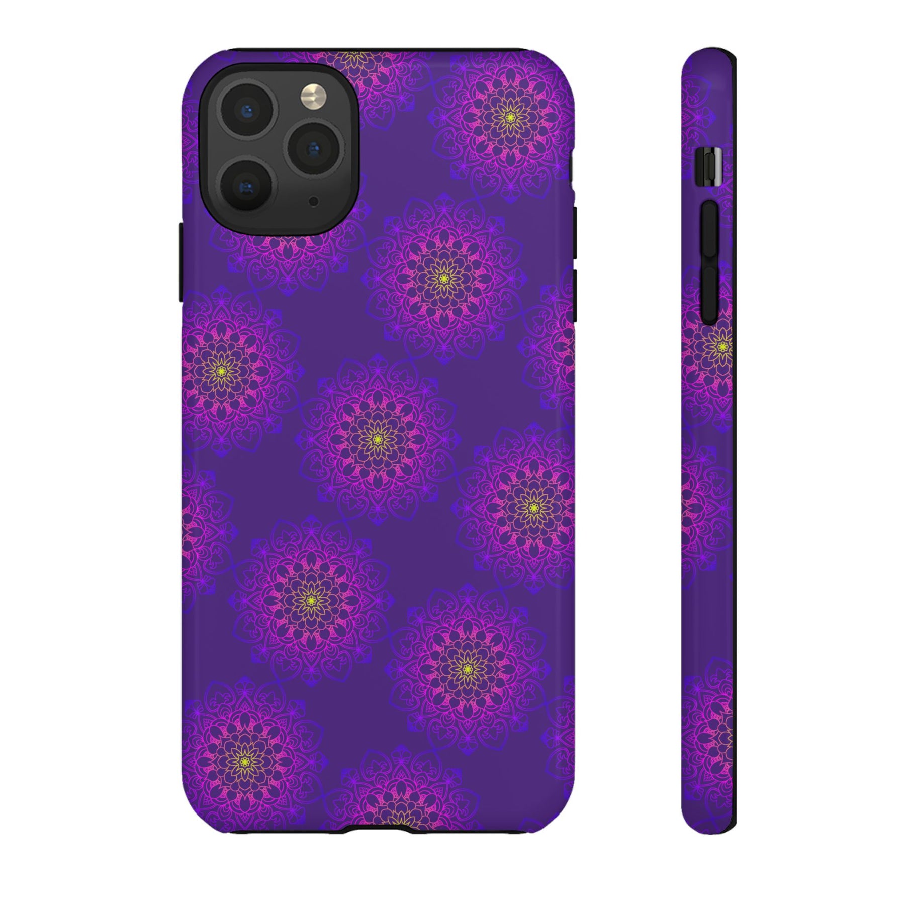 Experience the enchanting allure of our vibrant Tough Cases, where radiant mandala patterns dance across a rich purple backdrop, creating a visual symphony that captivates the senses. Each intricate design exudes a sense of artistry and joy, making this phone case not just a protector, but a true statement piece that elevates your everyday life.