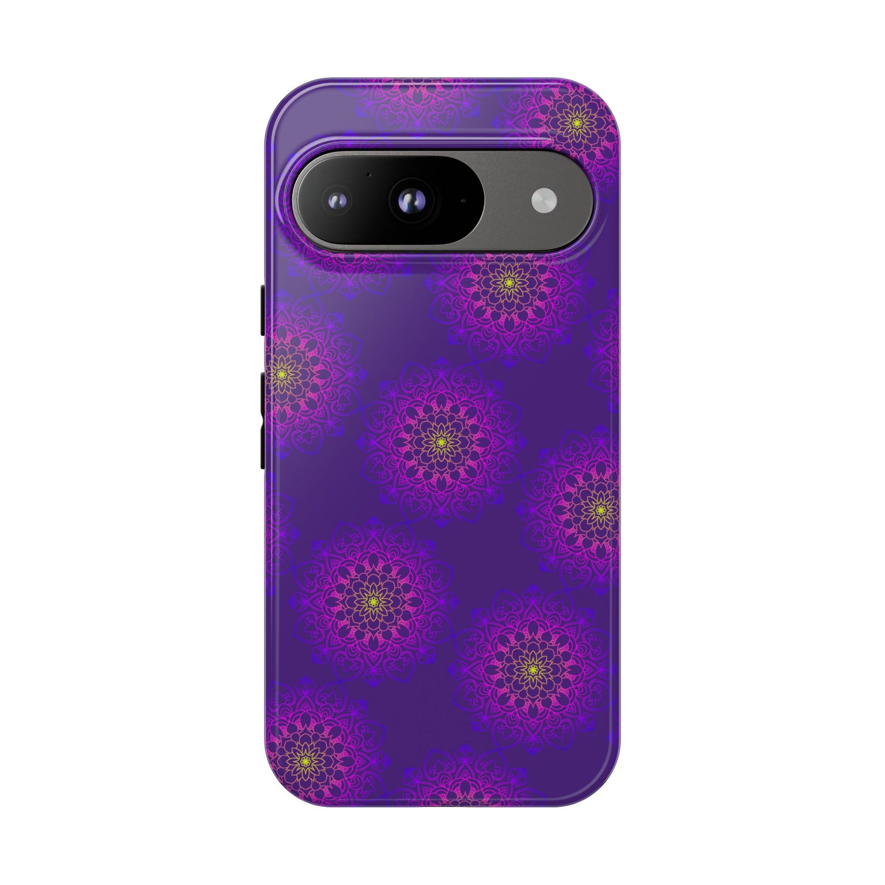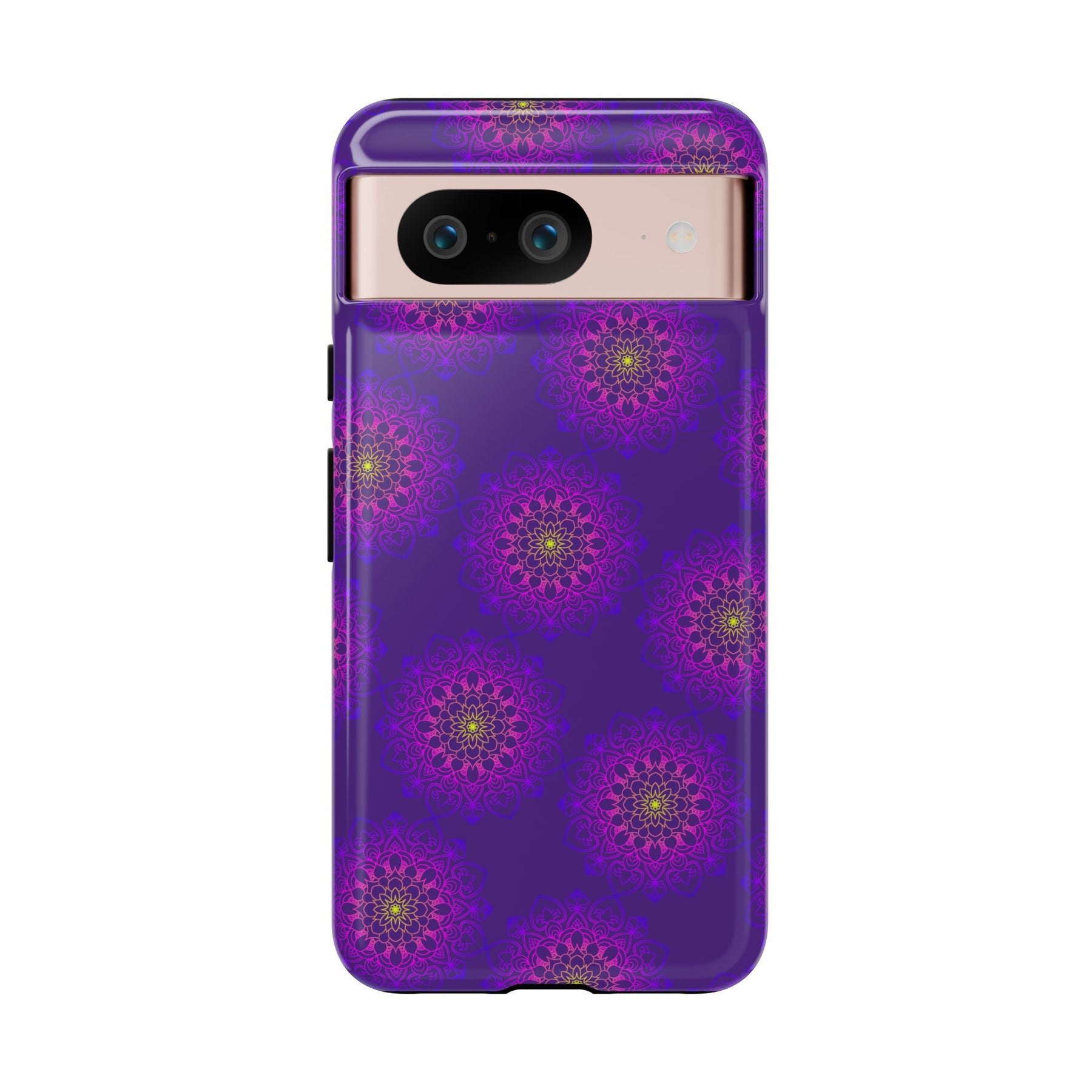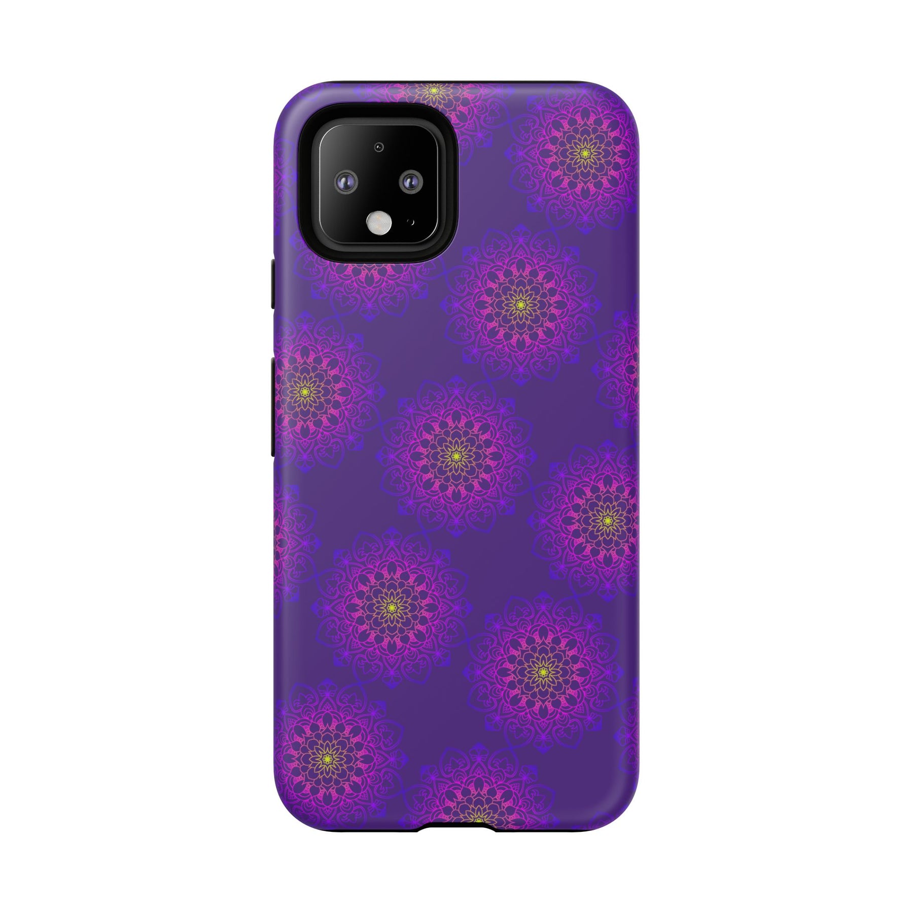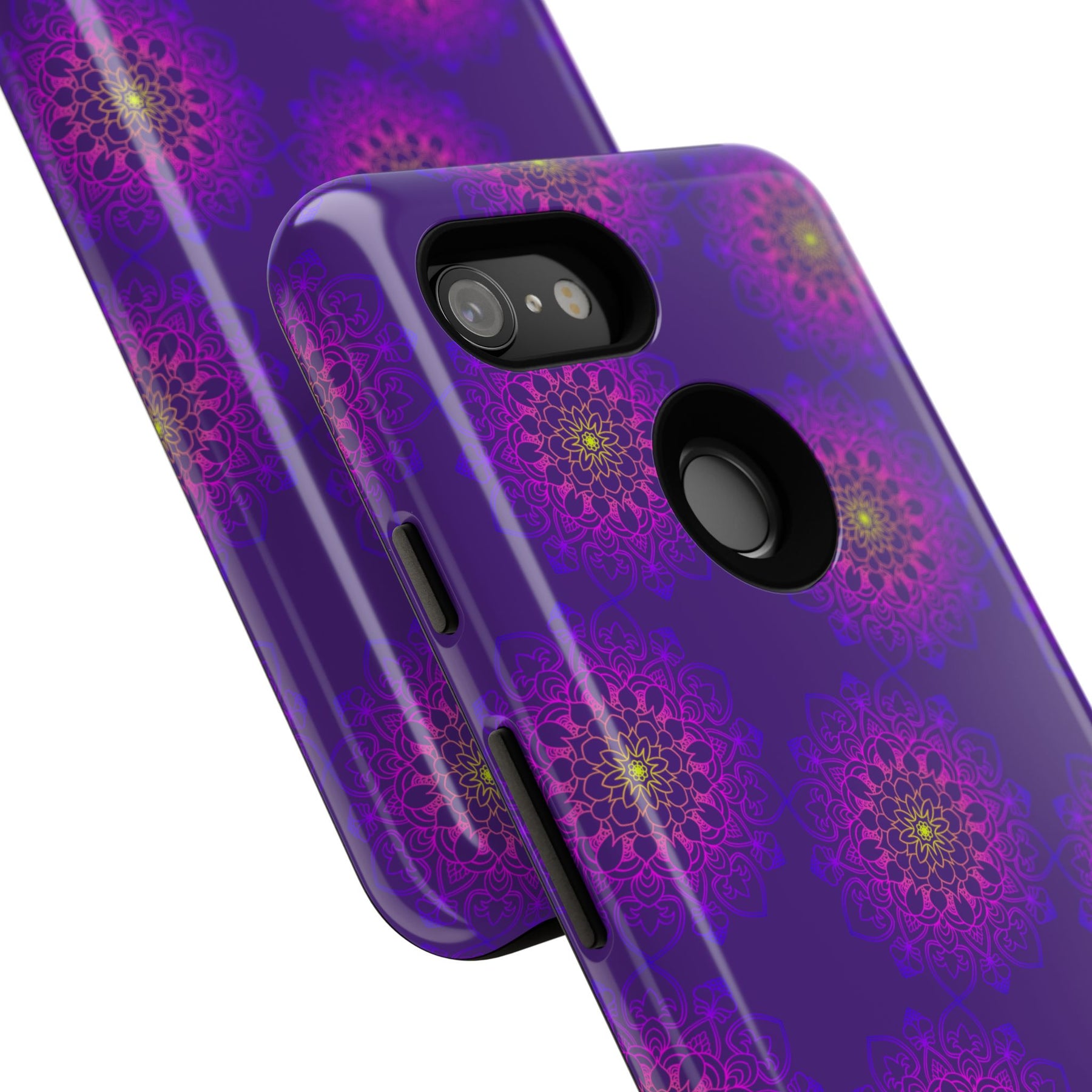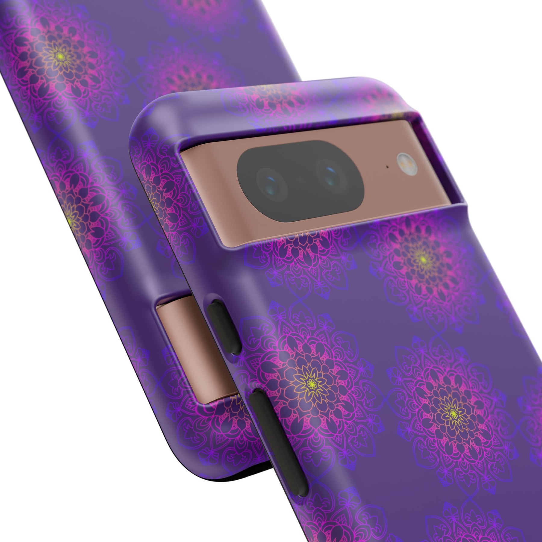 Experience the enchanting allure of our vibrant Tough Cases, where radiant mandala patterns dance across a rich purple backdrop, creating a visual symphony that captivates the senses. Each intricate design exudes a sense of artistry and joy, making this phone case not just a protector, but a true statement piece that elevates your everyday life.