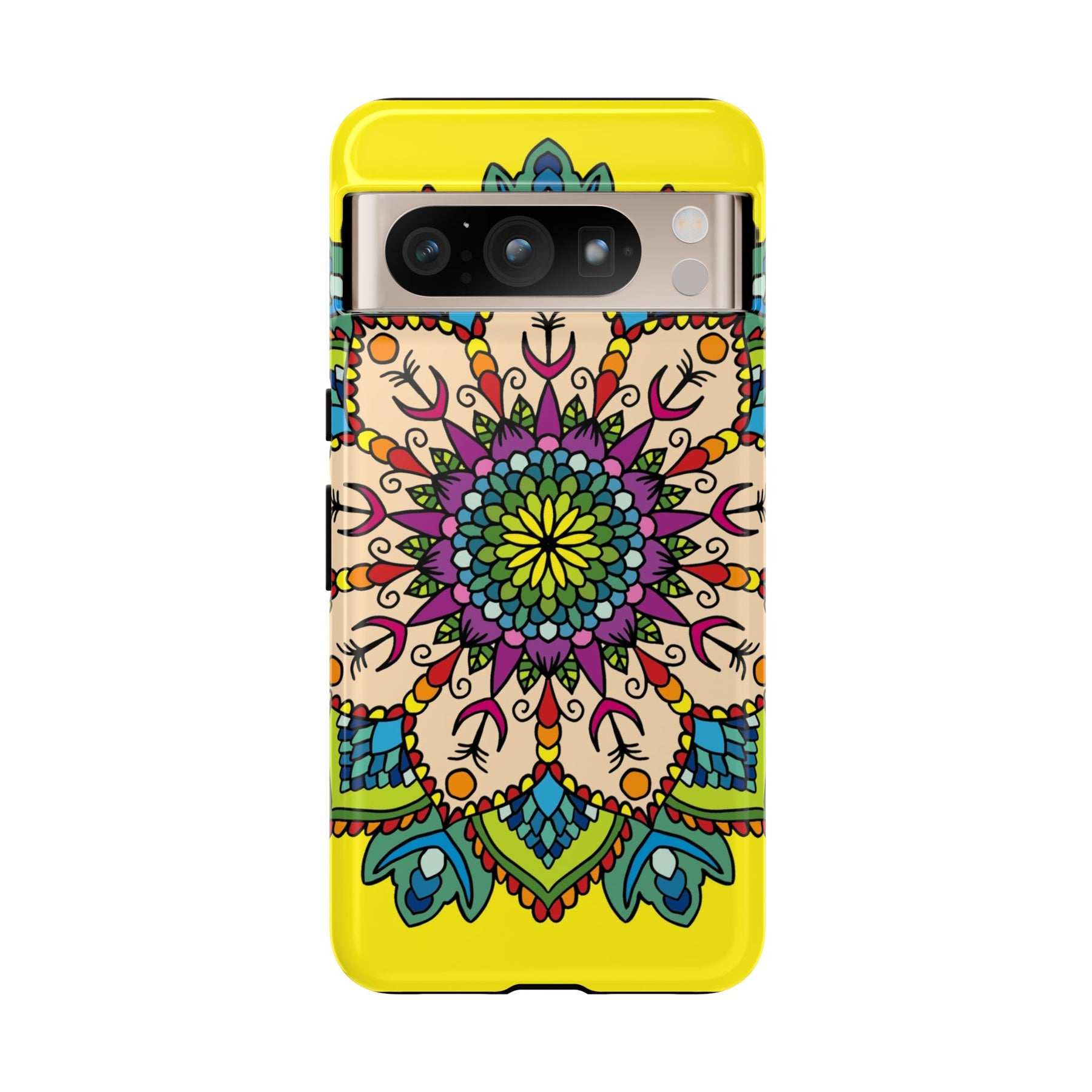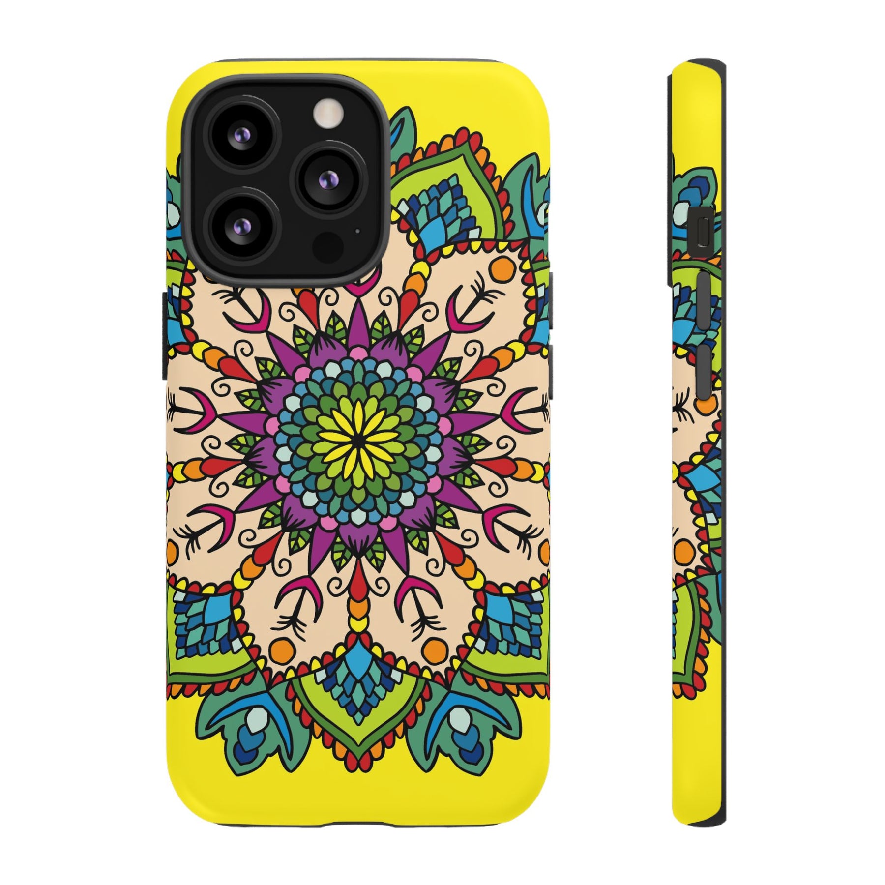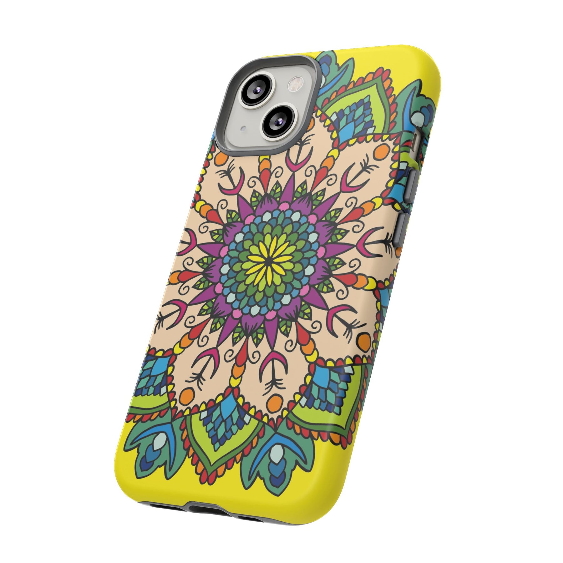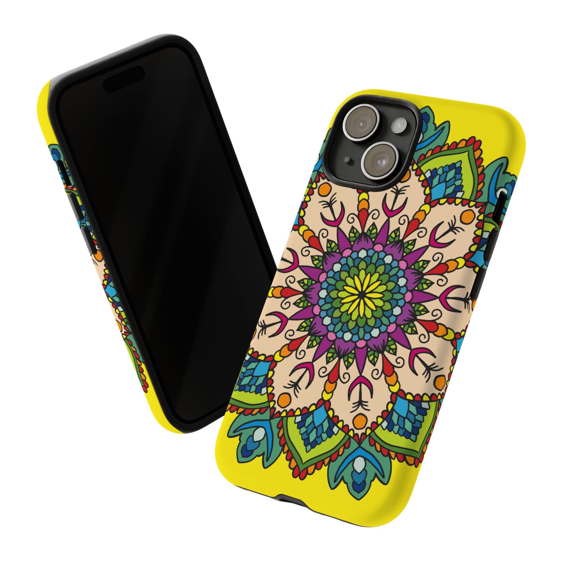 Embrace the vibrant spirit of summer with a striking phone case that captures the essence of playful sophistication. Adorned with a captivating mandala design, this case radiates cheerful energy through its kaleidoscope of colors, inviting joy into your daily routine. Each intricate detail comes alive against a sunny yellow backdrop, turning your phone into a stunning accessory that reflects your unique artistic flair.