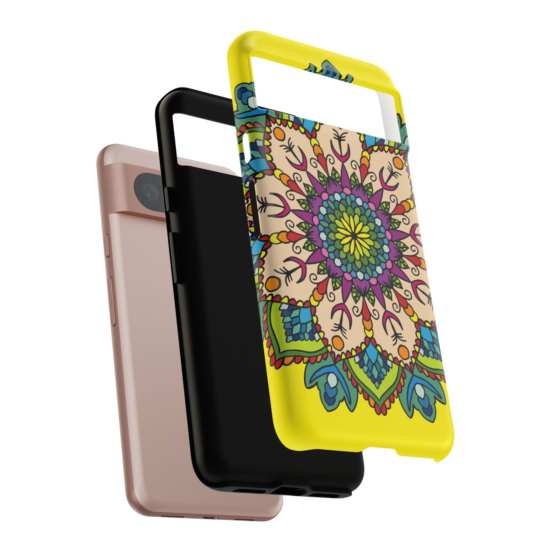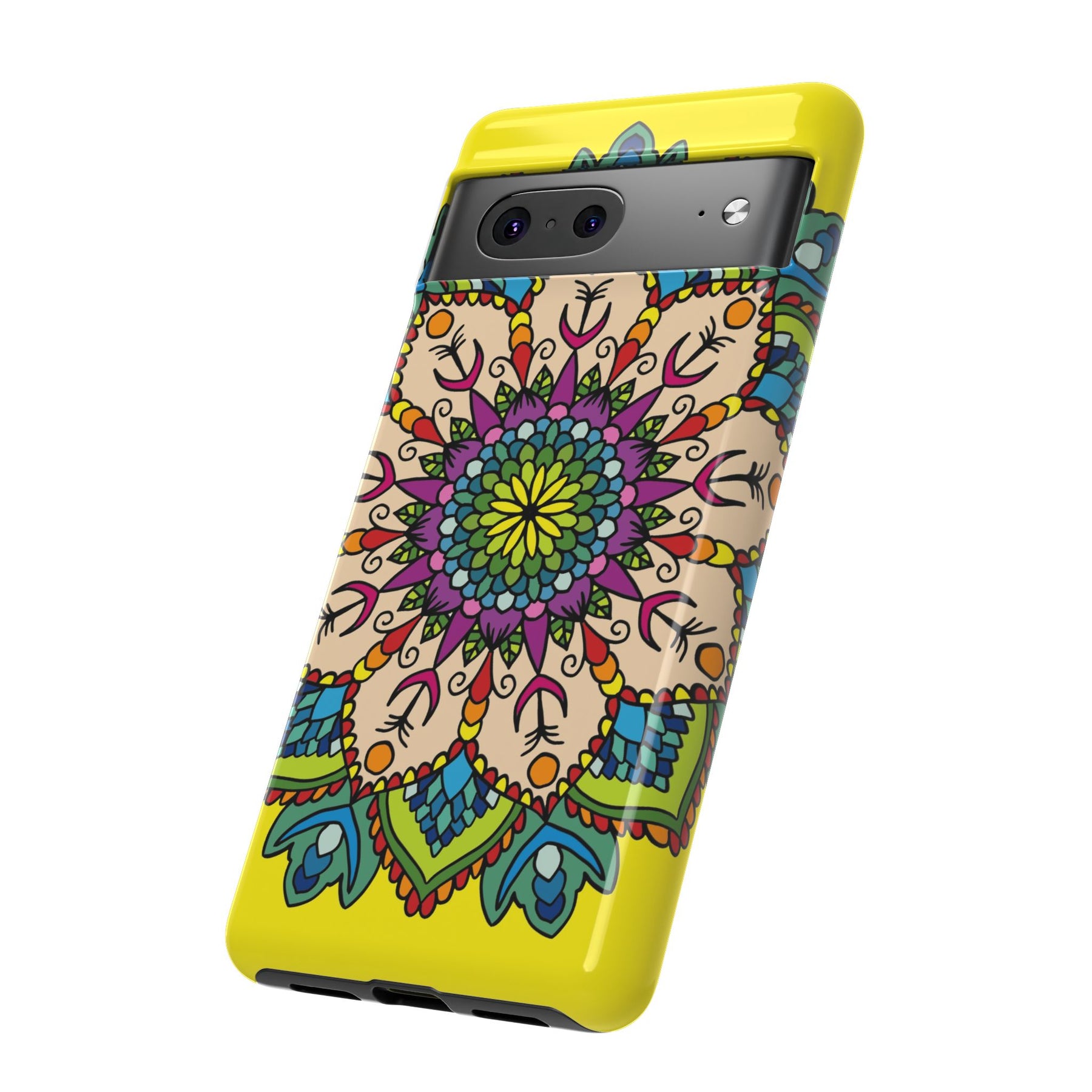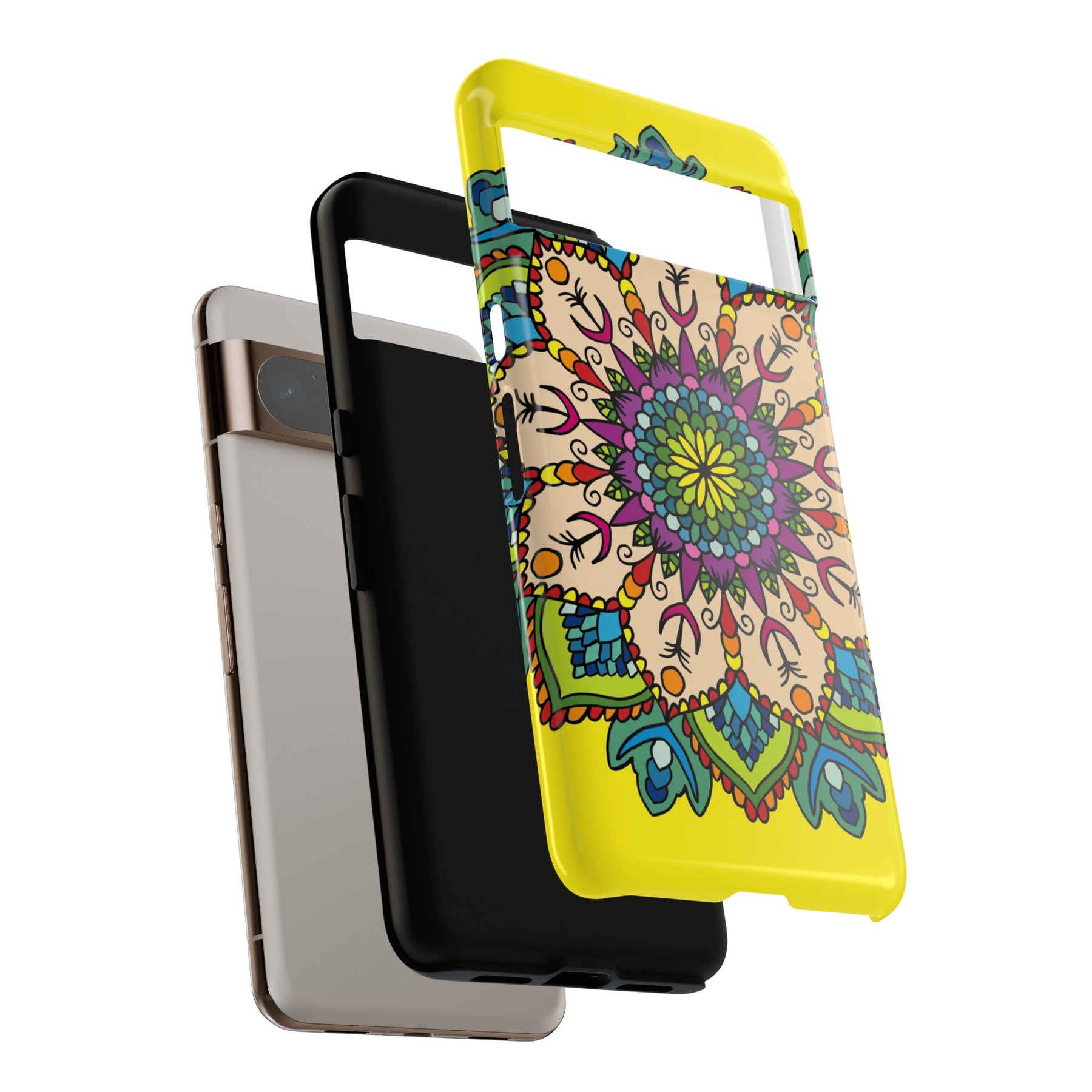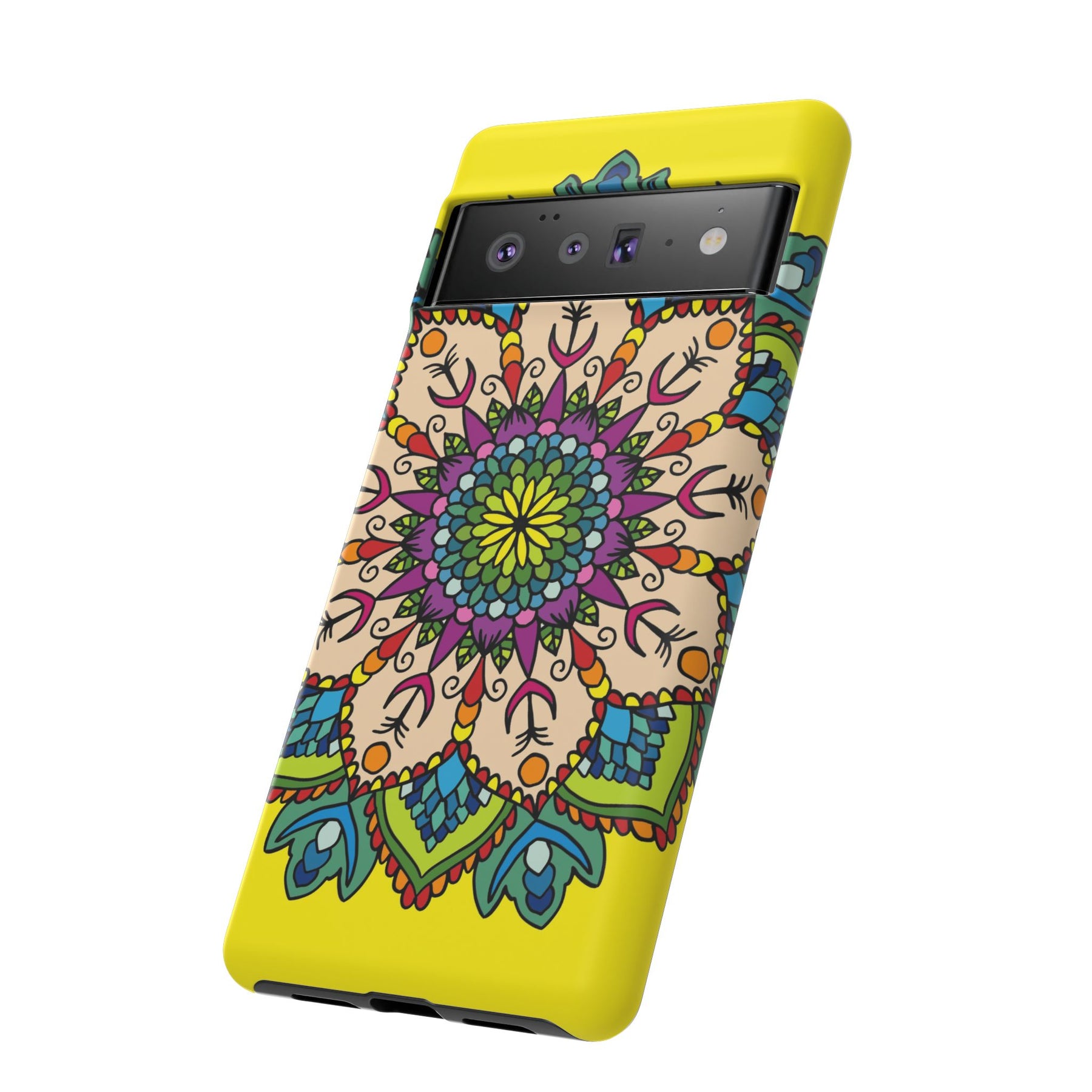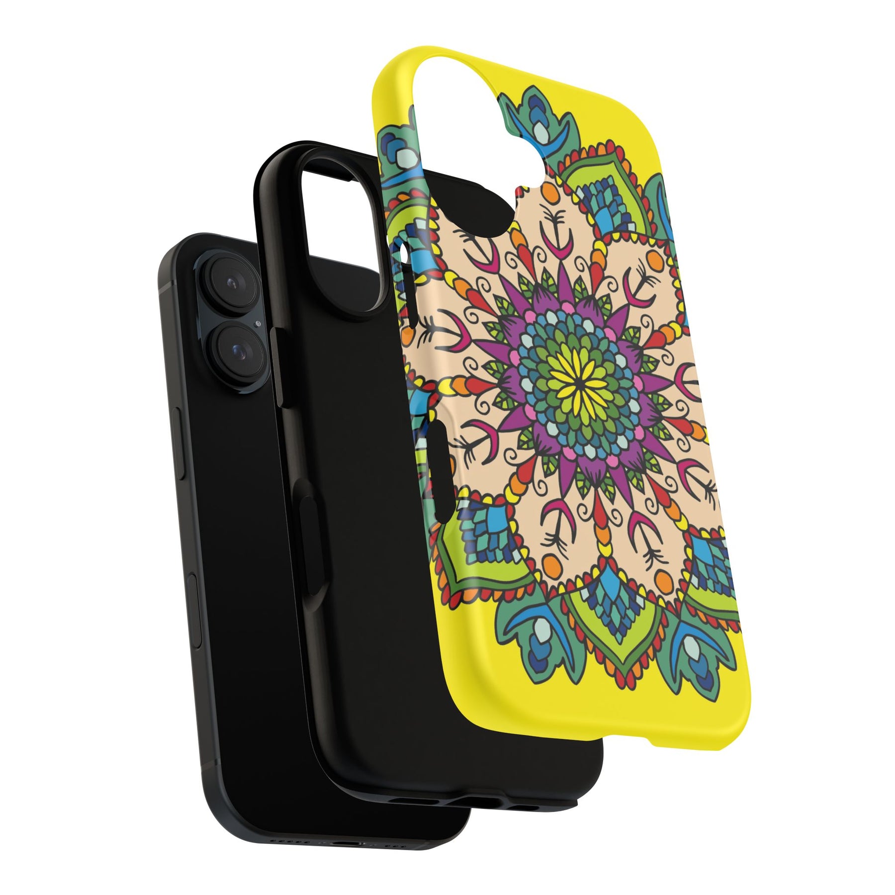 Embrace the vibrant spirit of summer with a striking phone case that captures the essence of playful sophistication. Adorned with a captivating mandala design, this case radiates cheerful energy through its kaleidoscope of colors, inviting joy into your daily routine. Each intricate detail comes alive against a sunny yellow backdrop, turning your phone into a stunning accessory that reflects your unique artistic flair.