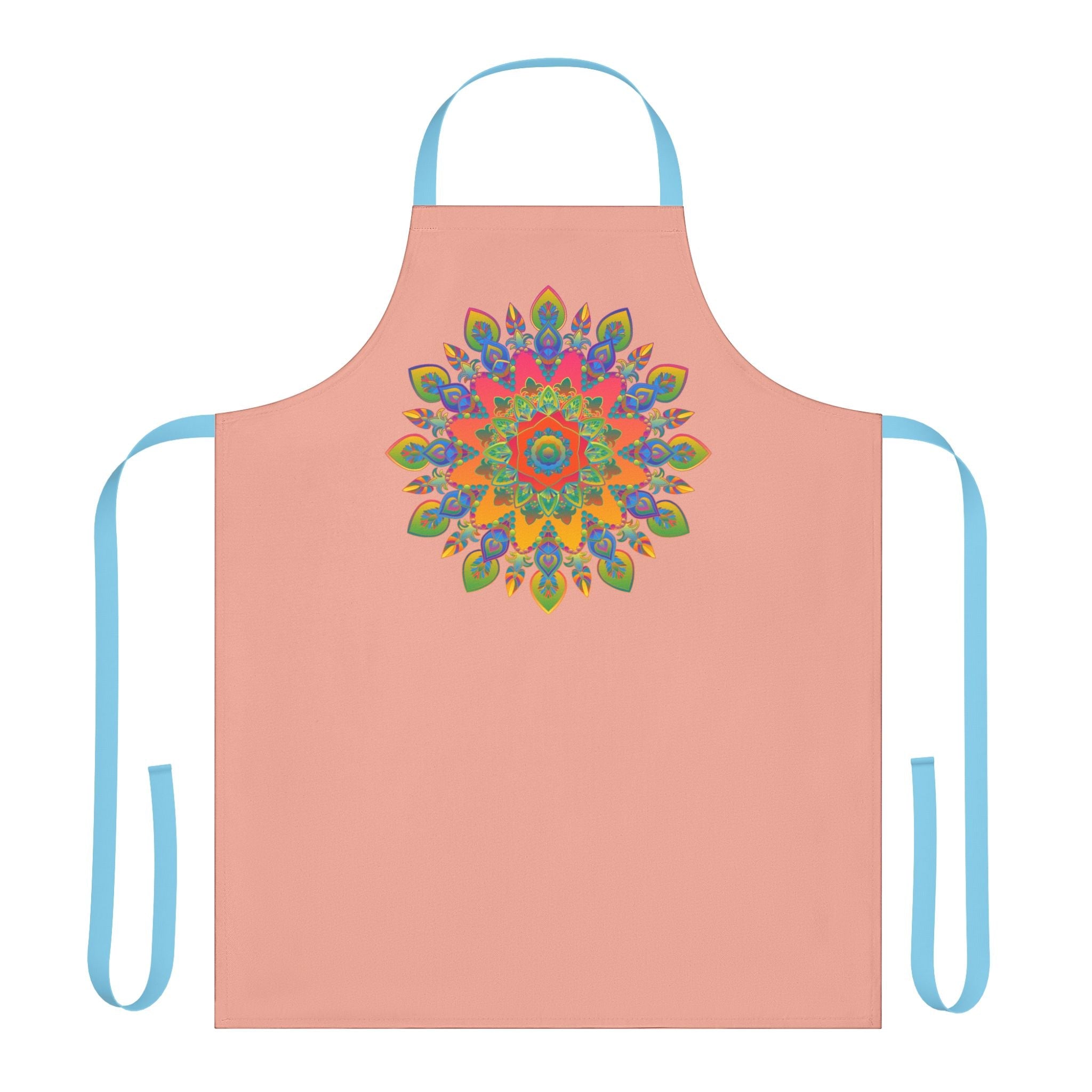 Bringing art to life, this captivating apron features an intricate mandala design that bursts with vibrant hues of apricot, blue, and green. The mesmerizing geometric patterns dance across the fabric, evoking a sense of creativity and joy that transforms your kitchen into a canvas of culinary expression.