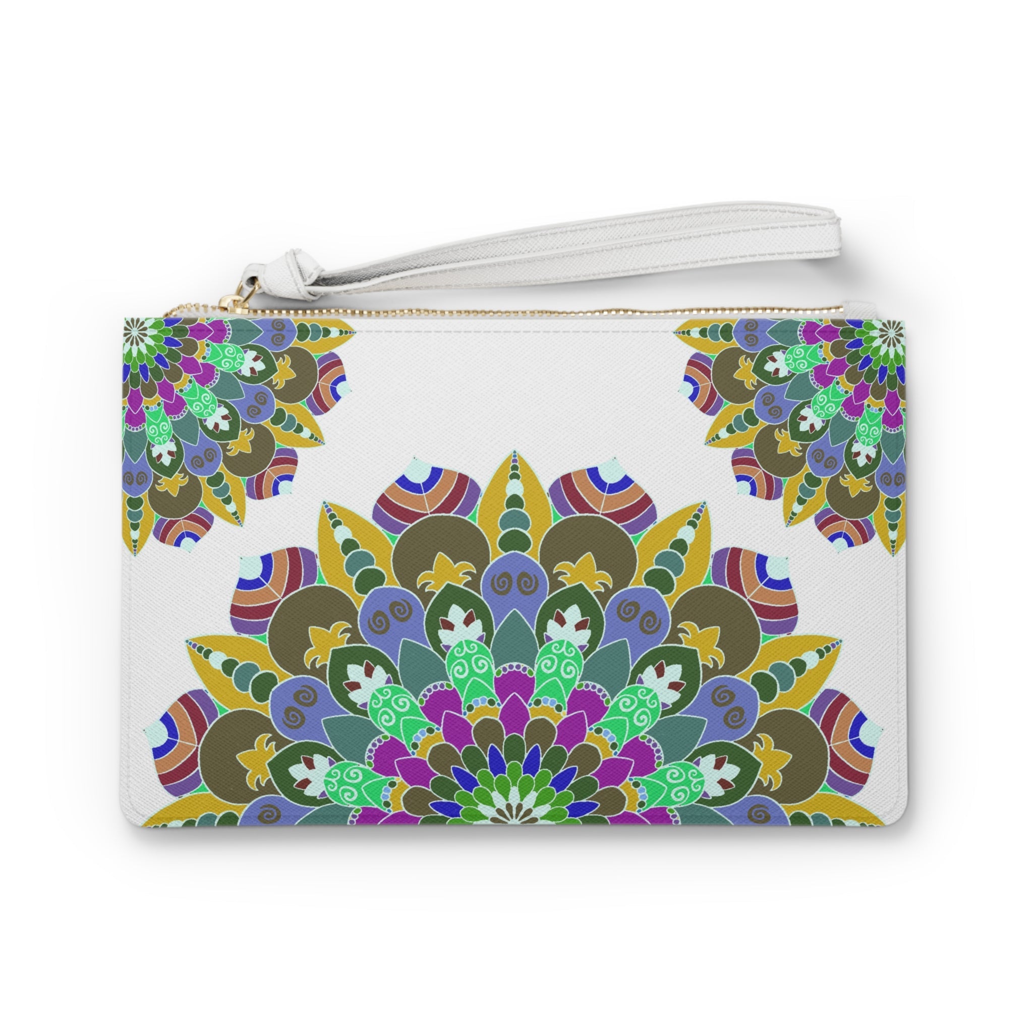 Unfold a world of vibrant artistry with this stunning clutch bag, showcasing an exquisite mandala design that bursts with life. The intricate patterns, radiating with hues of blue, green, gold, and purple, invite you to embrace a lifestyle filled with creativity and mindfulness. Each detail tells a story, merging traditional artistry with modern flair for a truly unique addition to your accessory wardrobe.